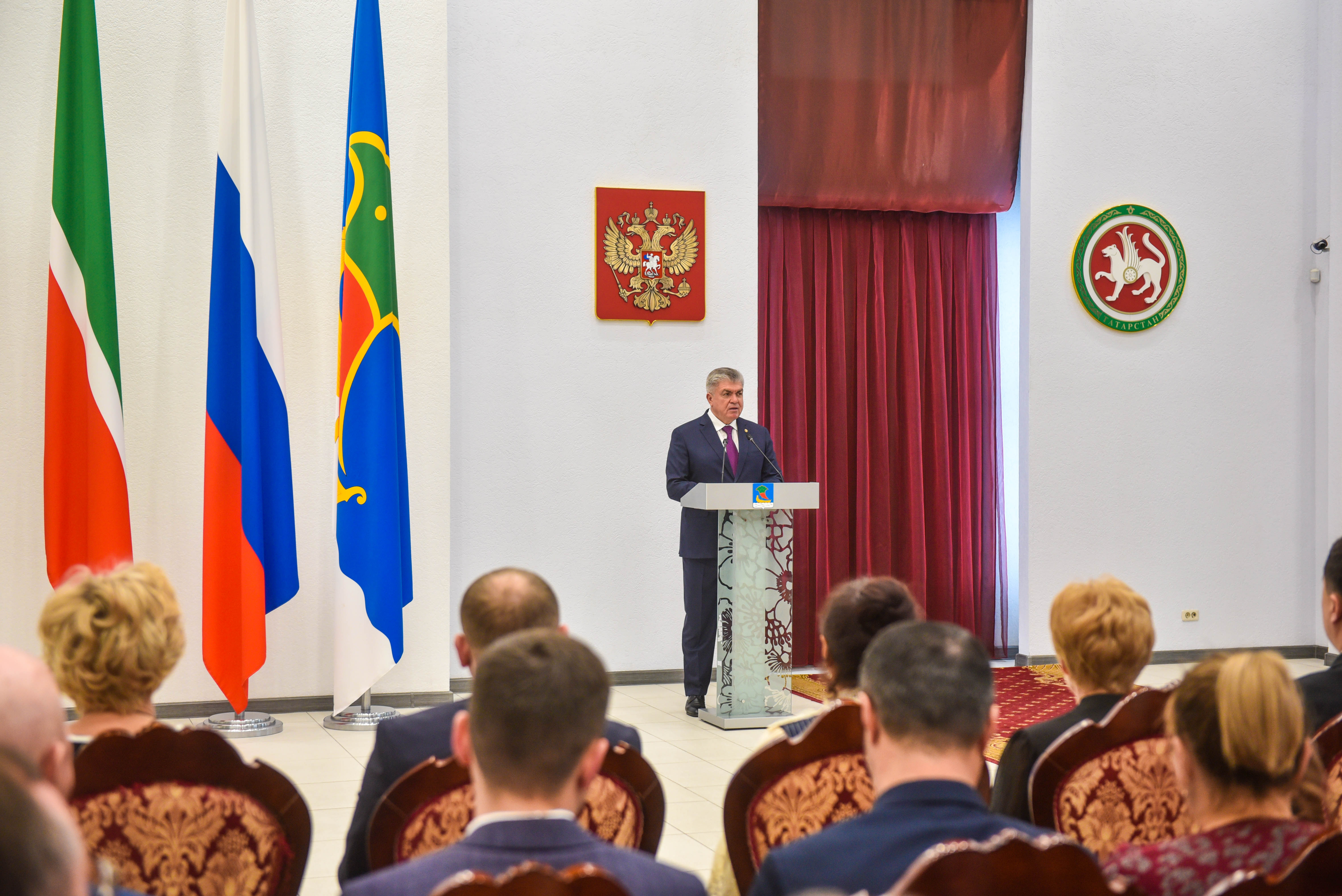 Сегодня во Дворце торжеств состоялось мероприятие, посвящённое профессиональному празднику «День работников бытового обслуживания населения и жилищно-коммунального хозяйства». Приветствовал и наградил сотрудников отрасли мэр города Наиль Магдеев.