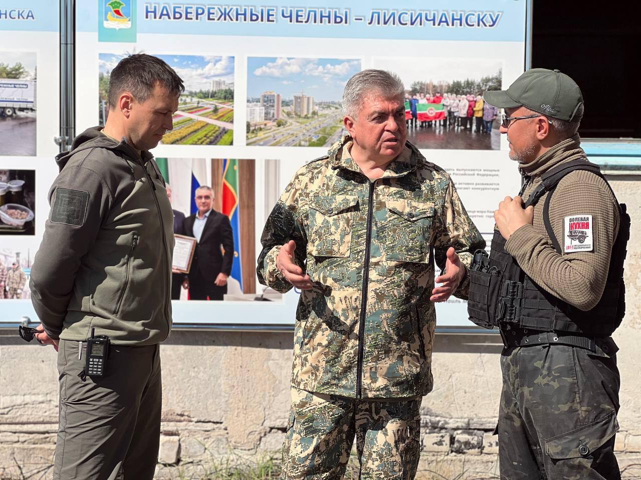 Мэр города Набережные Челны находится встретился с волонтёрами группы «Полевая кухня» из Набережных Челнов. С 2022 года команда во главе с Рустамом Гатиным при поддержке нашего города обеспечивает бесплатным горячим питанием женщин, детей и пожилых граждан города Лисичанска. За это время челнинцами подготовлено 4 млн порций.
