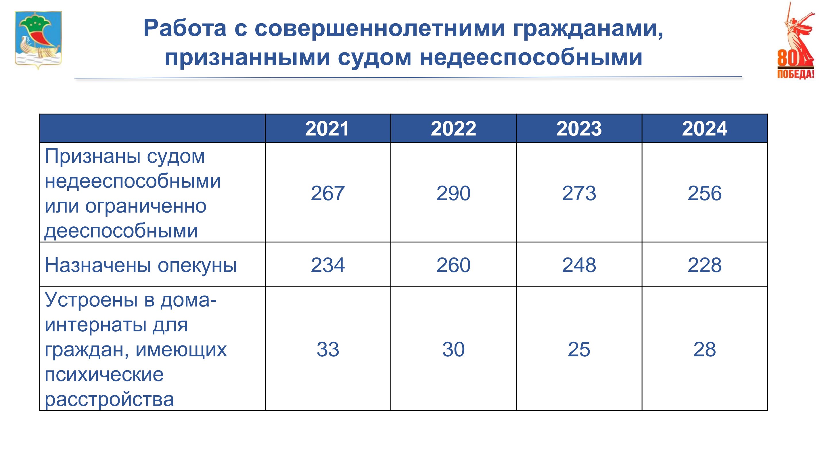 «2024 елда 256 кеше эшкә сәләтсез һәм эшкә сәләте чикләнгән дип танылды. 28е интернат-йортларга урнаштырылды. Башка эшкә сәләтсез гражданнарга опека рәсмиләштерелде», - дип билгеләп үтте опека һәм попечительлек бүлеге башлыгы Иван Калинин.