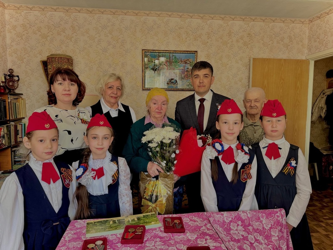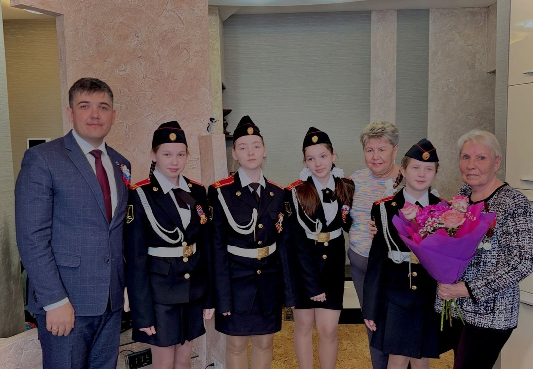 С этой памятной датой ветеранов пришли поздравить и вручить подарочные наборы от имени Мэра города Наиля Магдеева глава Центрального район Фидарис Хабибуллин, председатели ТОС: Валентина Березникова, Роза Хайрутдинова и Надежда Сухарева. К ним присоединились юные участники тимуровских отрядов из школ №22, №25 и Кадетской школы им. Никиты Кайманова, а также воспитанники детского сада №39 «Весёлый улей».