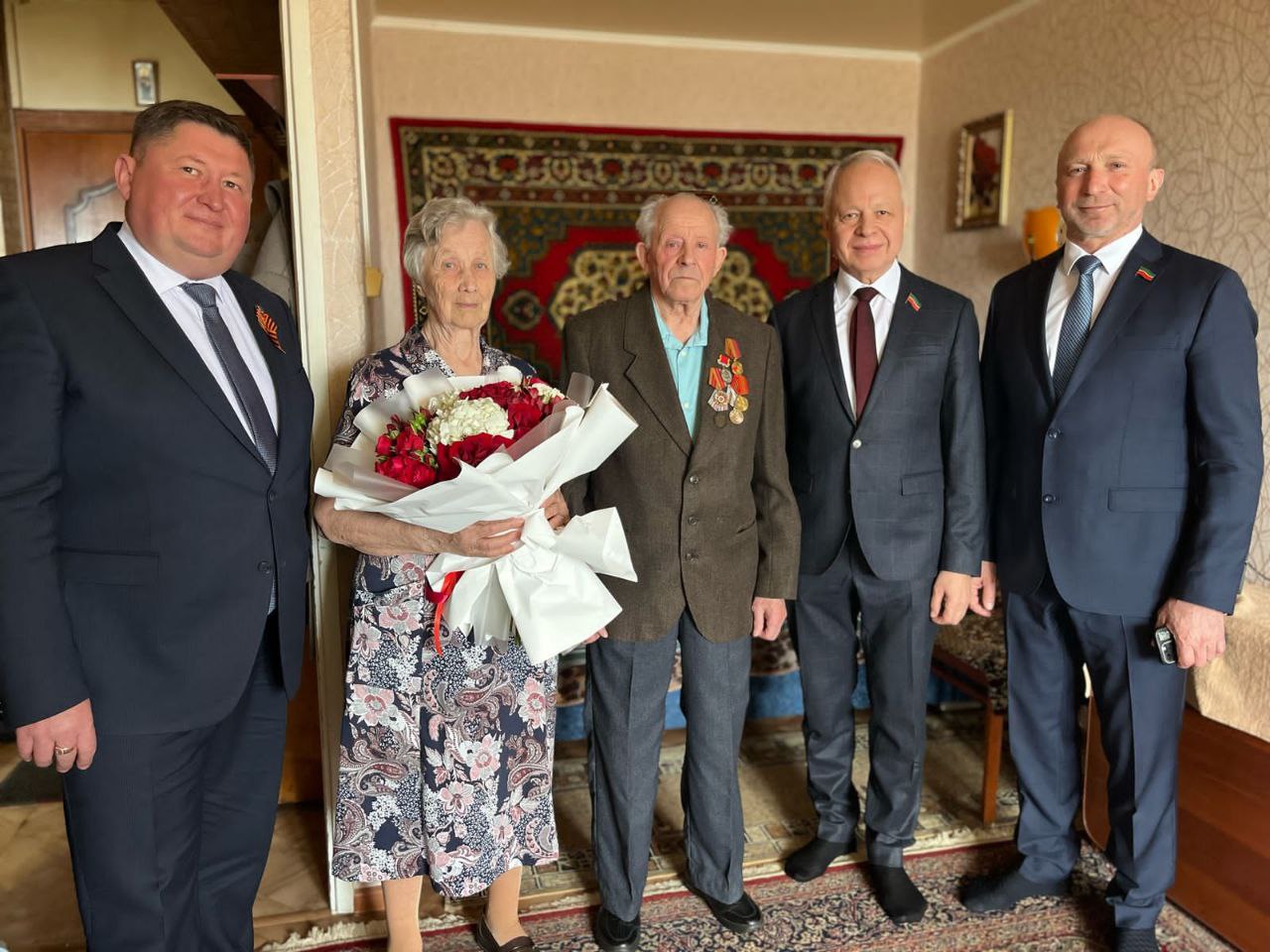 Депутаты Государственного Совета Республики Татарстан Ильдар Шамилов и Владимир Чагин посетили на дому бывших несовершеннолетних узников Николая Федоровича Борисова и Татьяну Дмитриевну Федину. От имени мэра города Наиля Магдеева вручили подарки, букеты цветов.