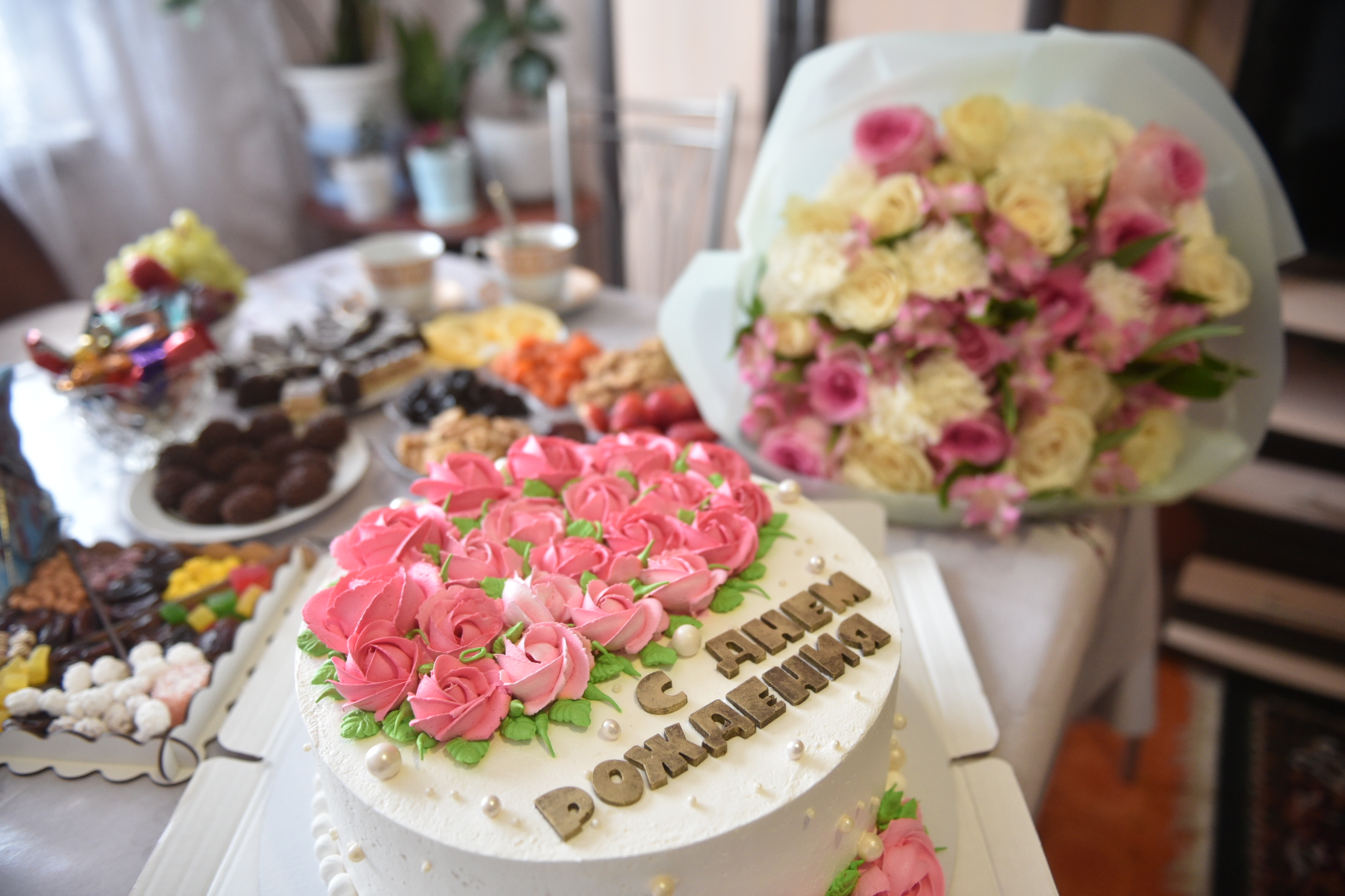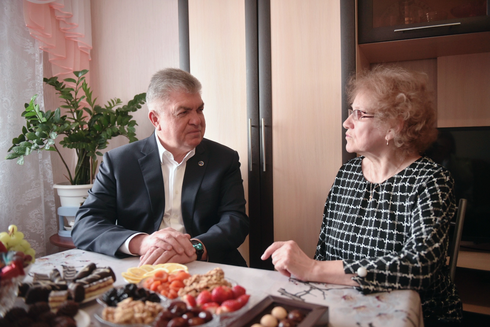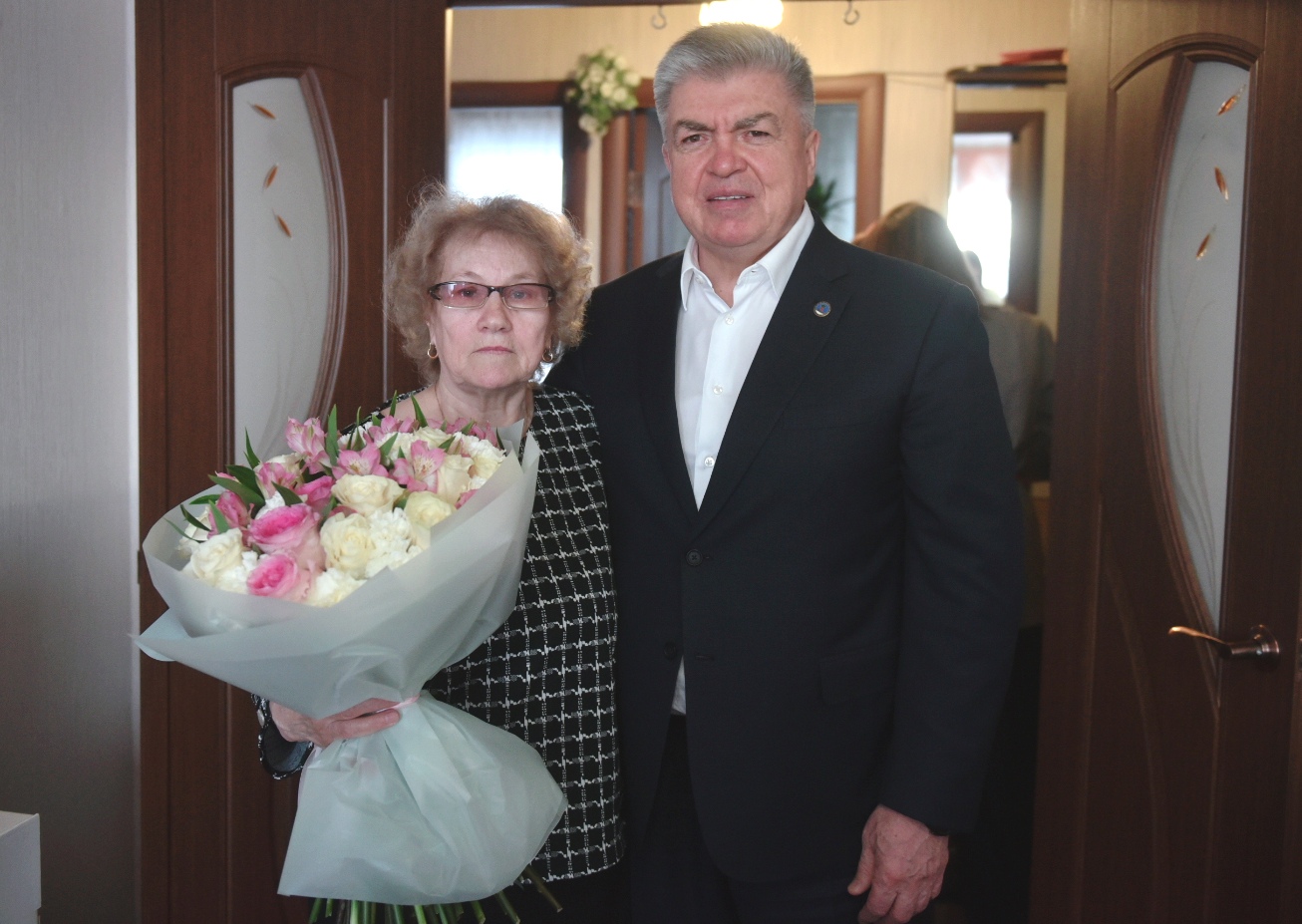 Сегодня утром мэр города Наиль Магдеев поздравил с днем рождения маму Героя России Сергея Чебнева – Ольгу Константиновну Чебневу. Он вручил ей букет и подарки.