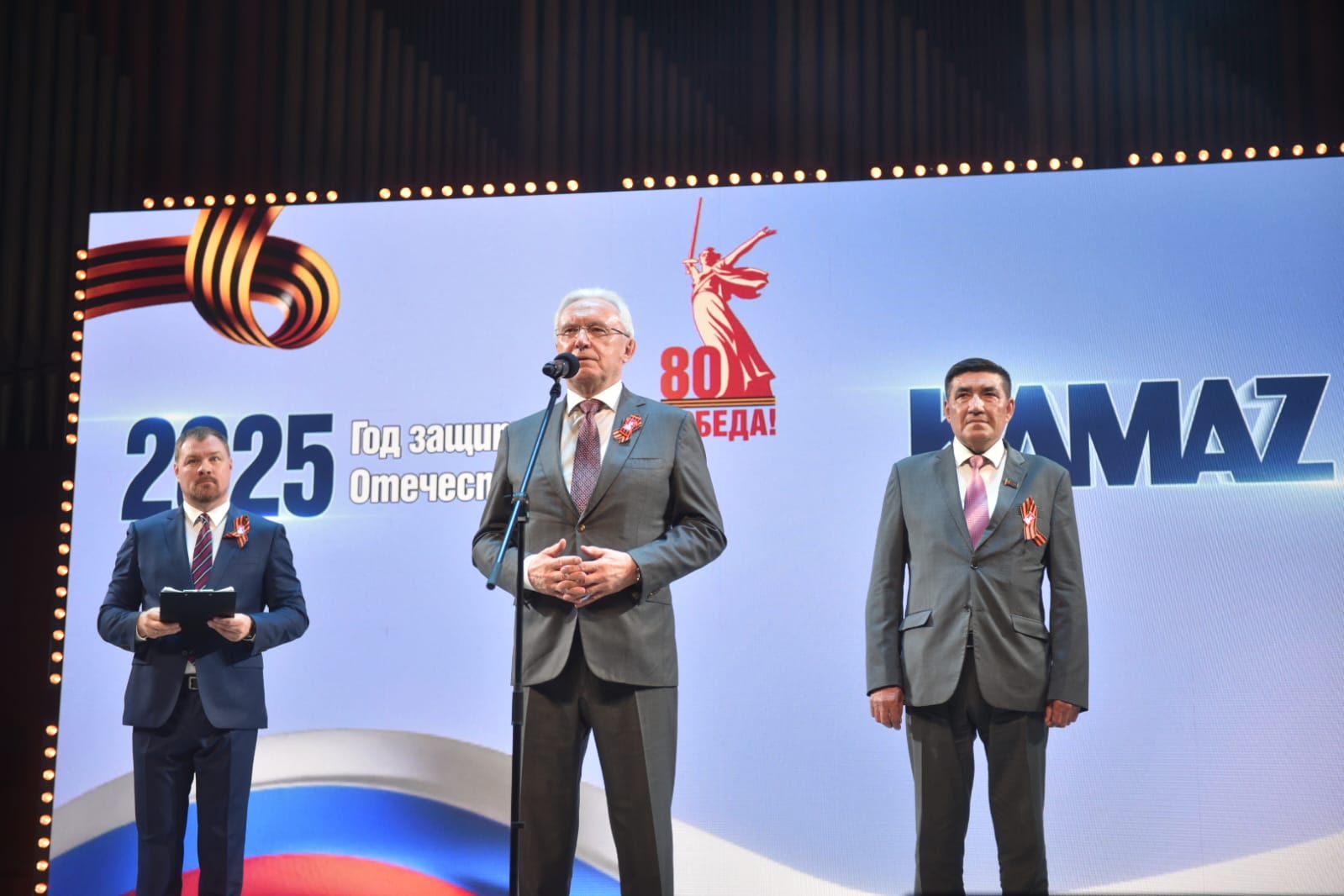 Сегодня в Органном зале прошел концерт, организованный ПАО «КАМАЗ» в честь предстоящего 80-летия Победы в Великой Отечественной войны. На мероприятии присутствовали мэр города Наиль Магдеев, генеральный директор ПАО КАМАЗ Сергей Когогин, топ-менеджмент автогиганта.