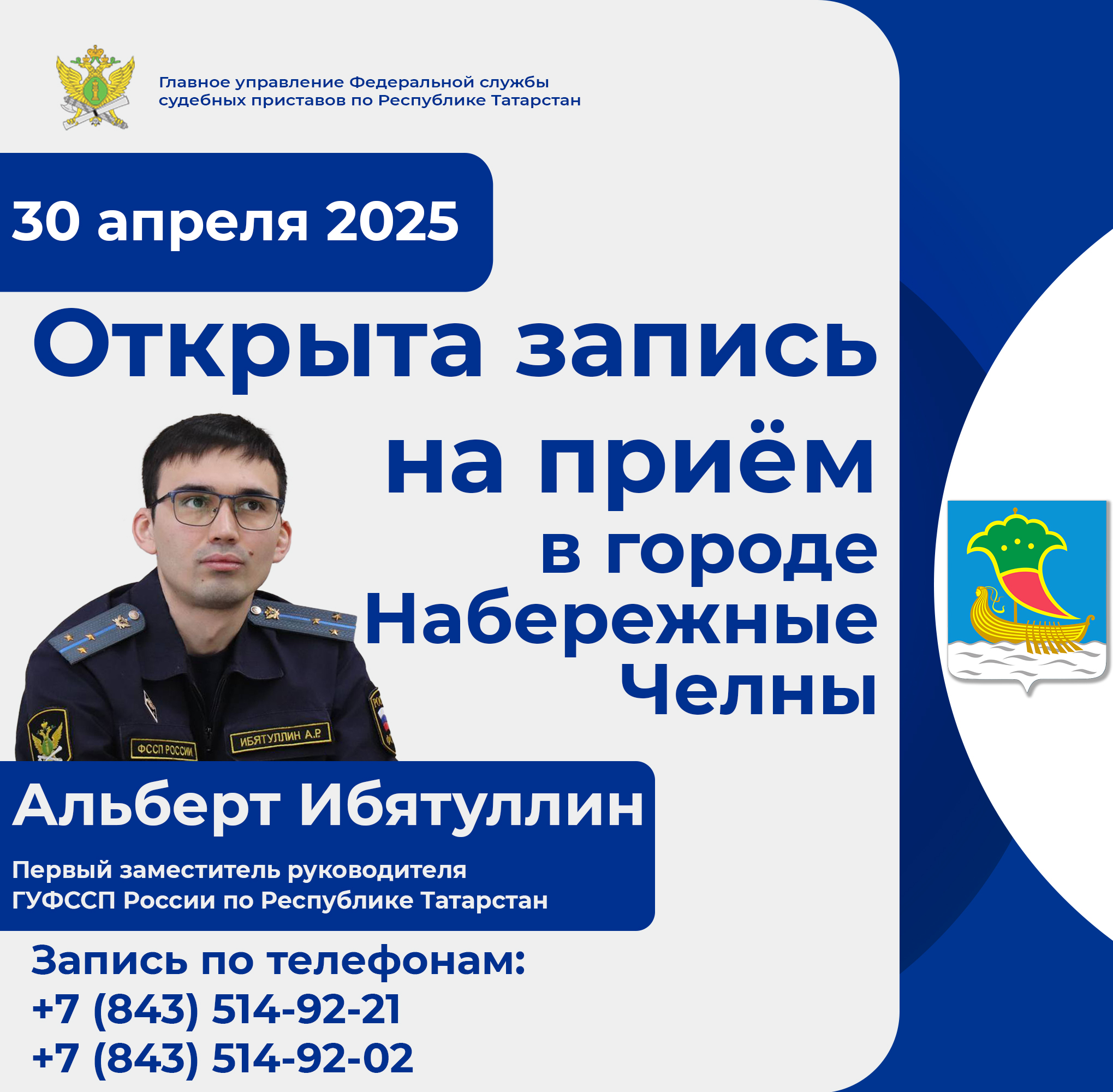 30 апрель көнне, Федераль суд приставлары хезмәтенең Татарстан буенча идарәсе җитәкчесе урынбасары Альберт Ибәтуллин Яр Чаллы шәһәре халкын кабул итә.