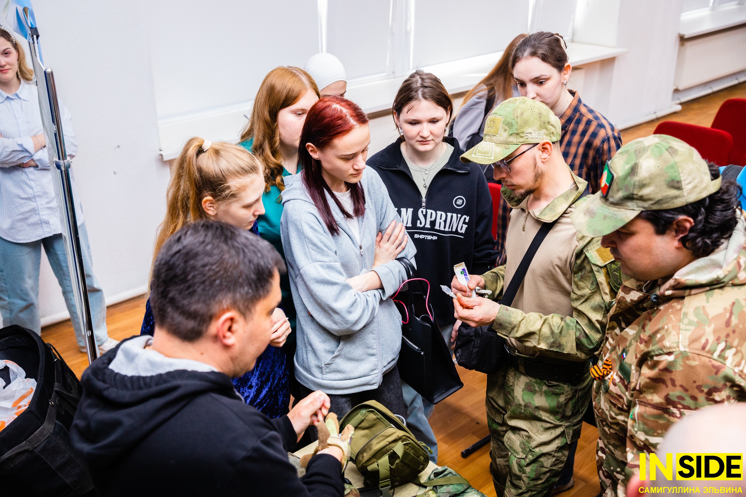 В Набережночелнинском государственном педагогическом университете состоялась встреча участников специальной военной операции со студентами учебного заведения. Михаил Жилин, Эдуард Старков и Альберт Шайхутдинов рассказали собравшимся, как проходила служба: о быте, столкновениях с противников, выживании в непростых условиях.