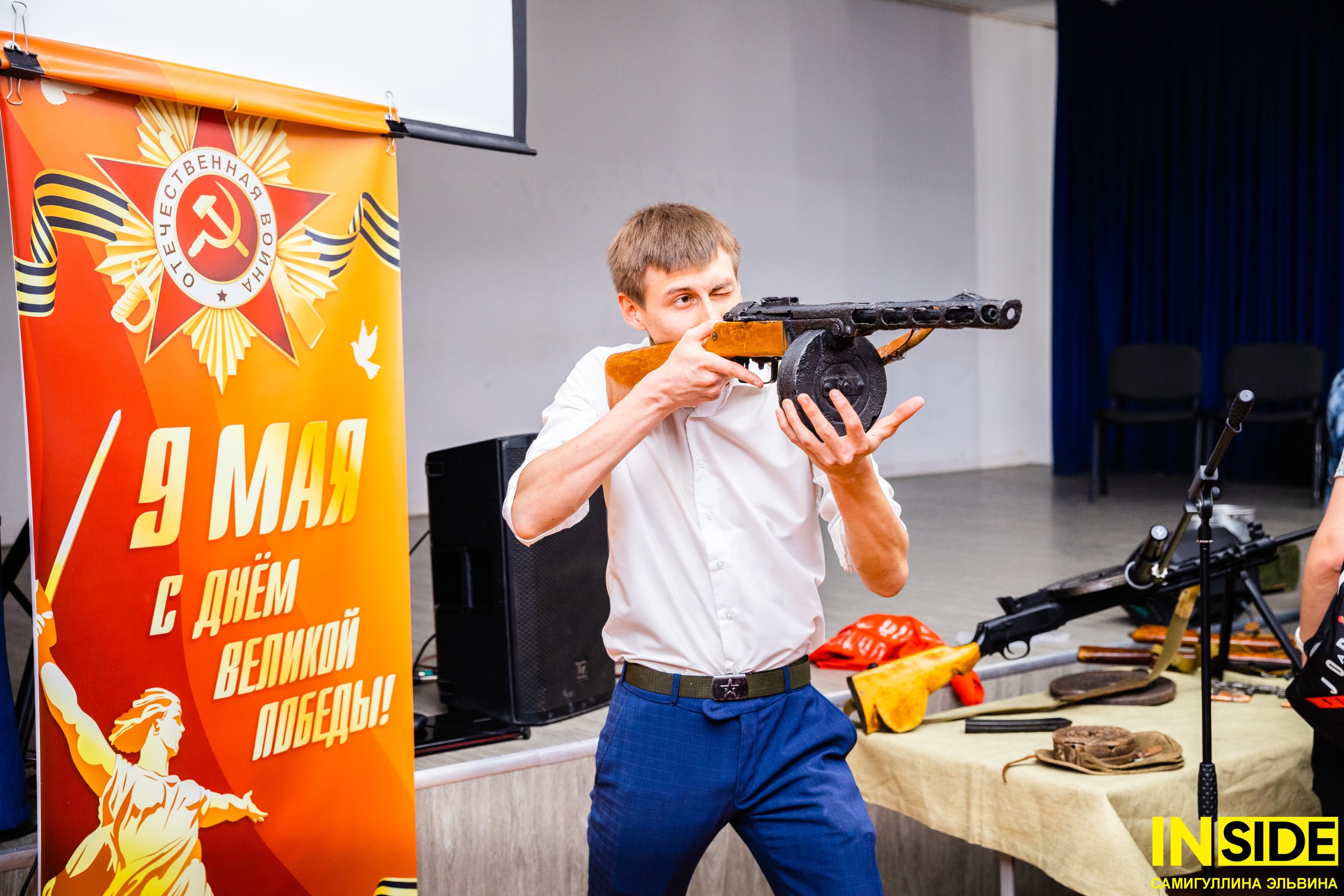 «У нас поисковая группа из 2 человек, базируемся в Князевской СОШ. Бывший ученик школы воссоздал, дополнил ранее созданный музей школы, заполнил экспонатами. Есть блоки Великой Отечественной войны, русско-татарской избы, Афгана, Чечни,Таджикистана, СВО. Присутствует тематика: пионерия, комсомол. Музей существует более 10 лет. Сейчас в нем находится более 1000 экспонатов. Часть мы привезли к вам, в университет», – отметил гость, указывая на стол с экспонатами.