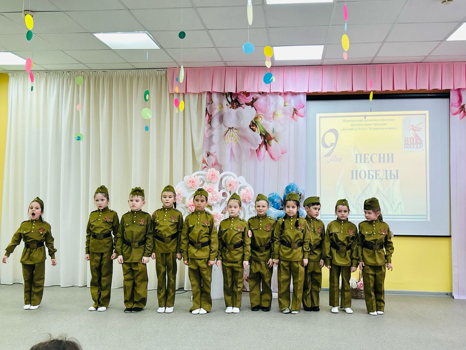В детском саду №114 «Челнинская мозаика» прошел яркий и эмоциональный конкурс военно-патриотической песни «Песни Победы». Мероприятие было приурочено к знаменательной дате — 80-летию Победы в Великой Отечественной войне.