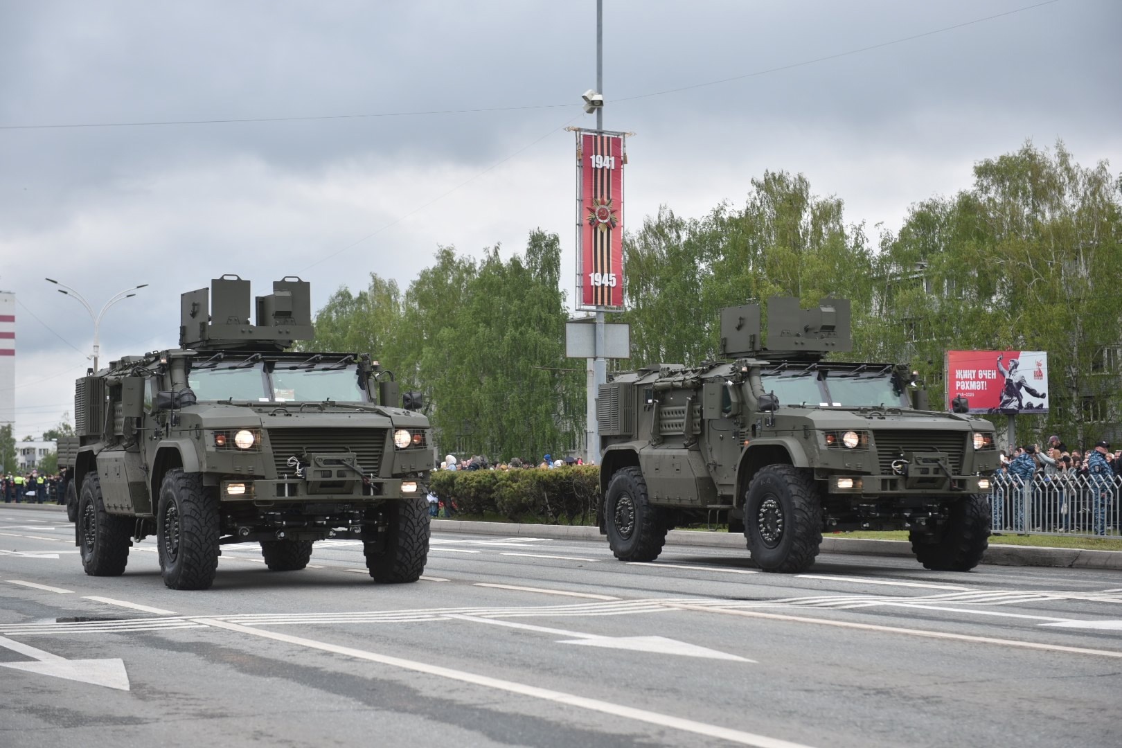 Укучылар, студентлар, Яр Чаллы шәһәрендә җитештерелә торган техника парад хөрмәтенә узды.