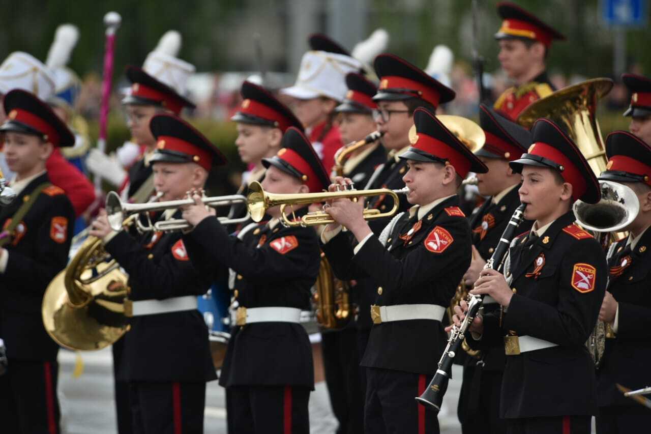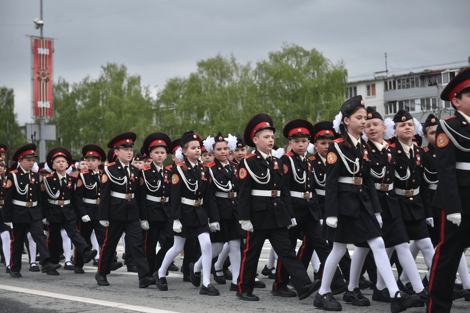 Никита Кайманов исемендәге кадет мәктәбен парадта «Кайманов йолдызчыклары» барабанчылары, «Пограничники» кадет корпусы карабинерлары һәм «Пожарные спасатели» корпусы тәрбияләнүчеләре тәкъдим итте. Алар артыннан студентлар килә, аларның бер өлеше МЧС, хәрби-һава көчләре, диңгез пехотасы коткаручылары, элемтәчеләр, коры җир, чик һәм хәрби-космос гаскәрләре, шулай ук Бөек Ватан сугышы чорындагы хәрби көйләүчеләр, танкистлар формасында.