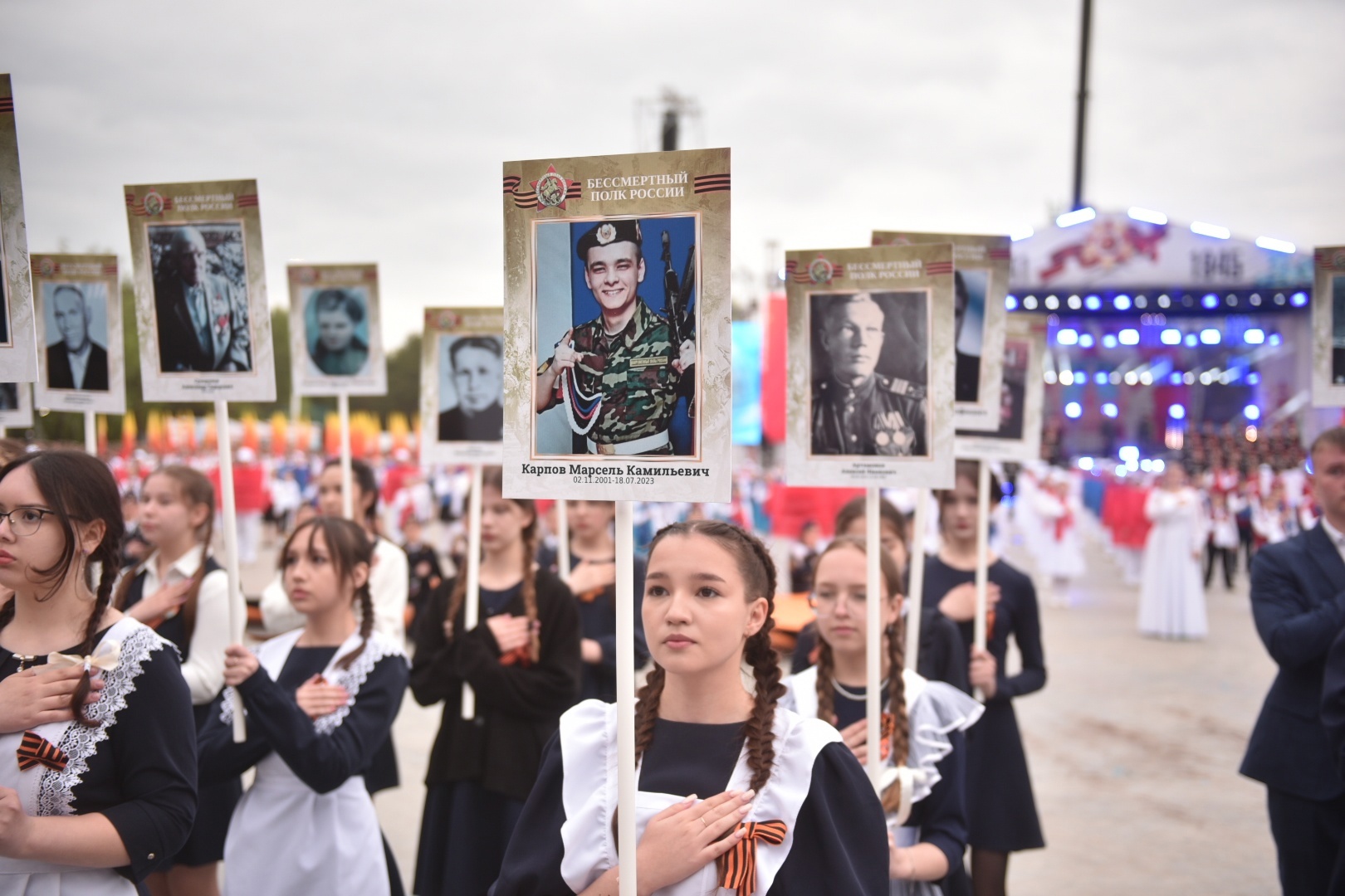 9:00 сәгатьтә Мәңгелек ут янында Хәтер вахтасы игълан ителде. Чарада Чаллы хаикме Наил Мәһдиев, ТР икътисад министры Олег Коробченко, Башкарма комитет җитәкчесе Фәрид Салахов, депутатлар һәм башкалар катнашты.