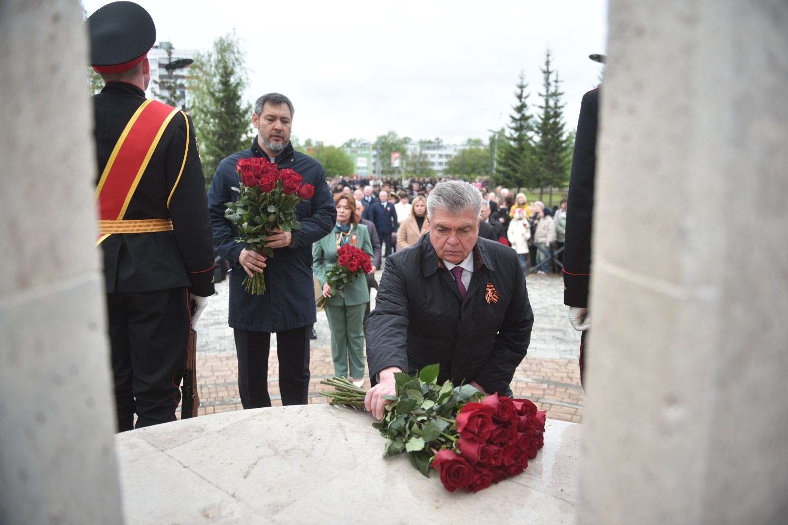Венокларны шәһәр хакиме Наил Мәһдиев, премьер-министр урынбасары, Татарстан Республикасы сәнәгать һәм сәүдә министры Олег Коробченко, Башкарма комитет җитәкчесе Фәрид Салахов, Татарстан Республикасы Дәүләт Советы депутатлары: Светлана Захарова, Владимир Чагин, Олег Николаев һәм Илдар Шамилов, Шәһәр Советы депутатлары, шәһәр предприятиеләре, оешмалары, учреждениеләр җитәкчеләре һәм башкалар салды.
