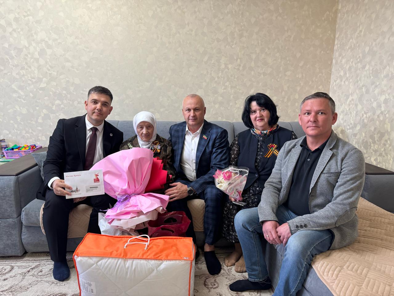 Россия Федерациясе Президенты Владимир Путин һәм Чаллы хакиме Наил Мәһдиев исеменнән юбилярны Үзәк районы хакимияте башлыгы Фидәрис Хәбибуллин котлады.