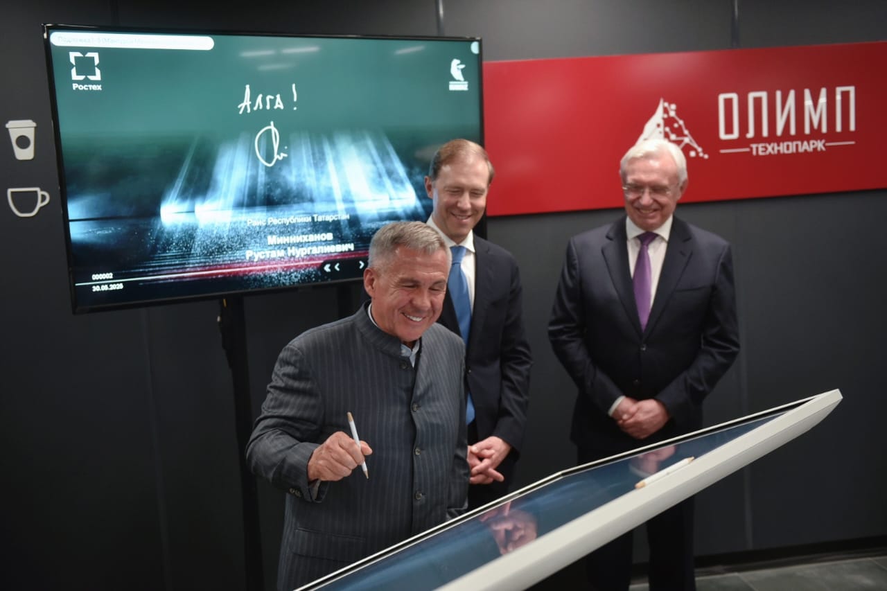 Россия Хөкүмәте Рәисенең беренче урынбасары Денис Мантуров һәм Татарстан Республикасы Рәисе Рөстәм Миңнеханов «Олимп» яңа сәнәгать технопаркын ачты.