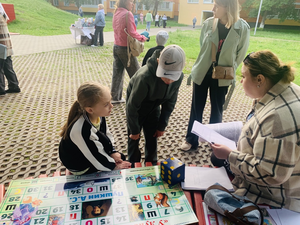 Дети состязались в скорости и ловкости в спортивных конкурсах, проверили свои знания в викторинах, посвященных Пушкинскому дню, – задания для интеллектуальной игры подготовил филиал городской библиотеки.