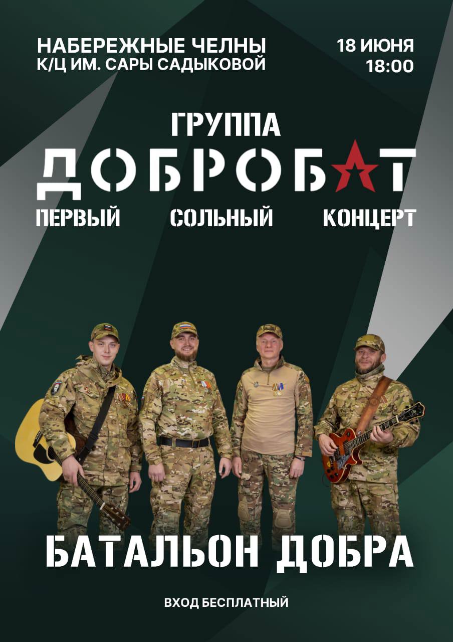 В Набережных Челнах и других крупных городах Республики Татарстан пройдет масштабный концертный тур группы «Добробат» с музыкальным спектаклем «От Победы к Победе». Проект приурочен к 80-летию Победы в Великой Отечественной войне 1941-1945 гг. и Году защитника Отечества.