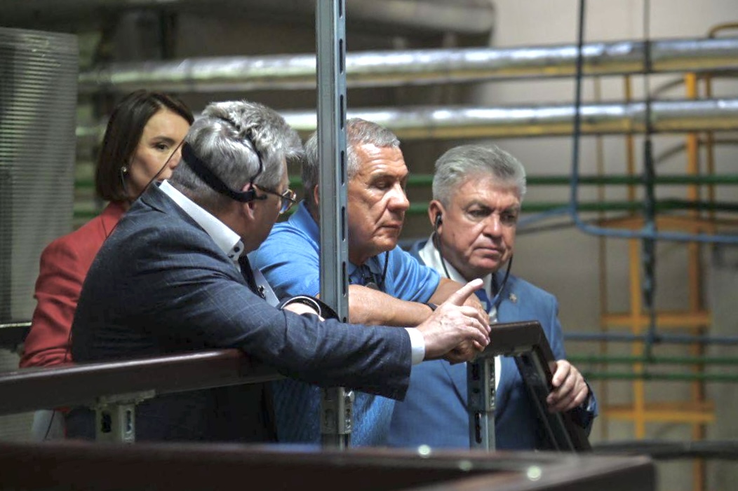 Төп бинада барлык тәрәзәләр һәм витражлар куелып беткән, фасадны бизәү эшләре бара. Рөстәм Миңнеханов төзүчеләр белән аралашты, төгәлләү вакыты турында сөйләштеләр һәм эшләрне тизрәк бетерү өчен ярдәм күрсәтергә боерды.