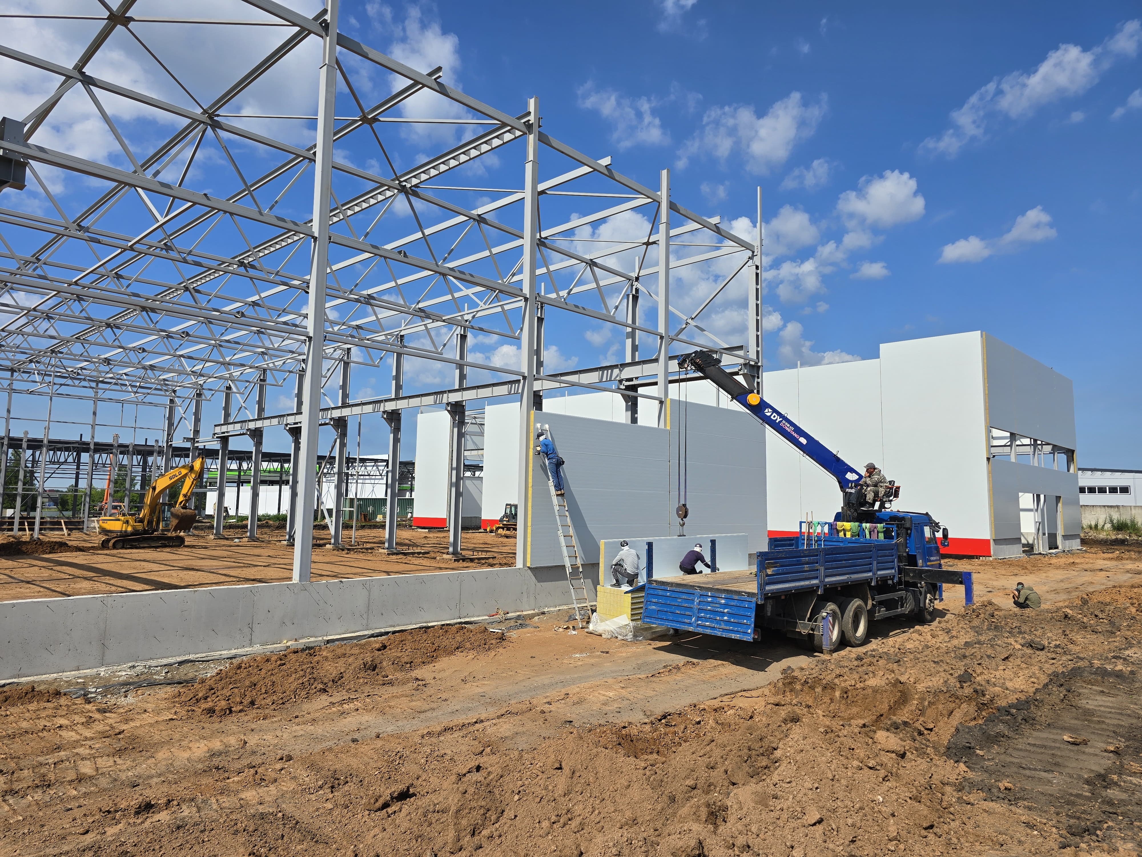 Начались работы и по строительству парковки и внутриплощадочных дорог: в этом году планируется завершить работы по формированию основания дороги, а верхний слой дорожного полотна будет уложен в следующем году.