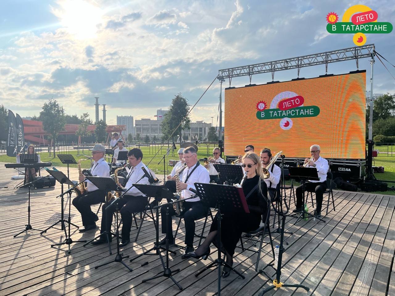 Концерт «В ритме лета» эстрадно-джазового оркестра состоялся на площади Азатлык. Мероприятие, организованное в рамках республиканского проекта «Лето в Татарстане», стало настоящим праздником музыки для челнинцев и гостей города.