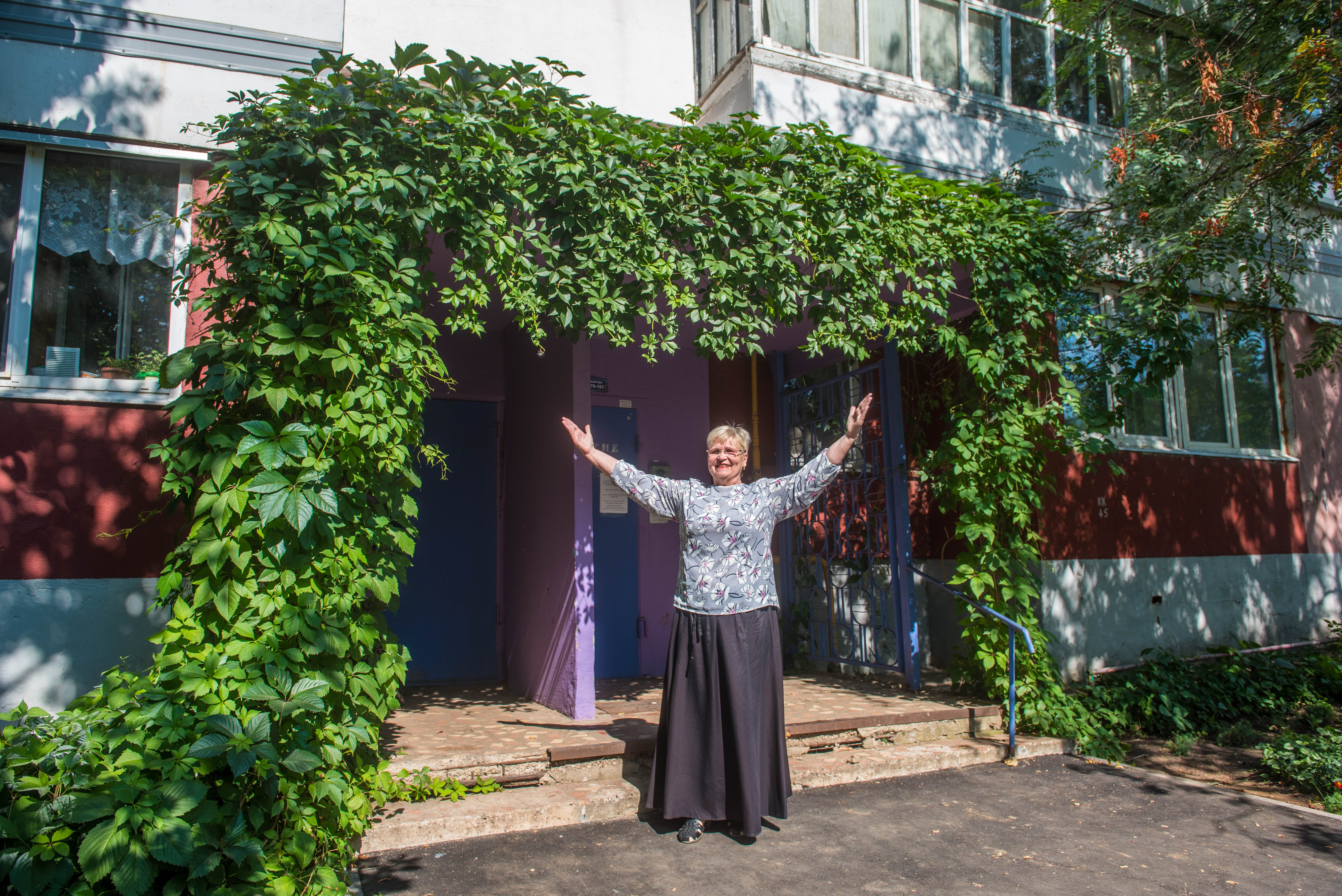 Әлеге комплекста яшәүче Наталья Циваконың да үзе карап үстергән яшел аркасы бар.