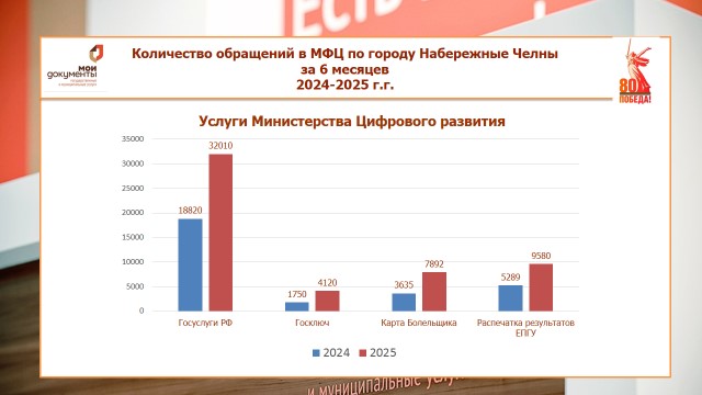 По итогам работы в I полугодии 2025 года за государственными услугами обратились жители по линии: Росреестра – 70 893 чел. (уменьшение на 62% по сравнению с аналогичным периодом прошлого года), МВД – 51 159 чел. (уменьшение на 46%), ФНС – 55 080 чел. (уменьшение на 29%), Социальный фонд России – 39 016 чел. (уменьшение на 36%). Снижение показателей по ряду услуг обусловлено тем, что заявители самостоятельно подают документы в органы государственной власти через портал госуслуг.