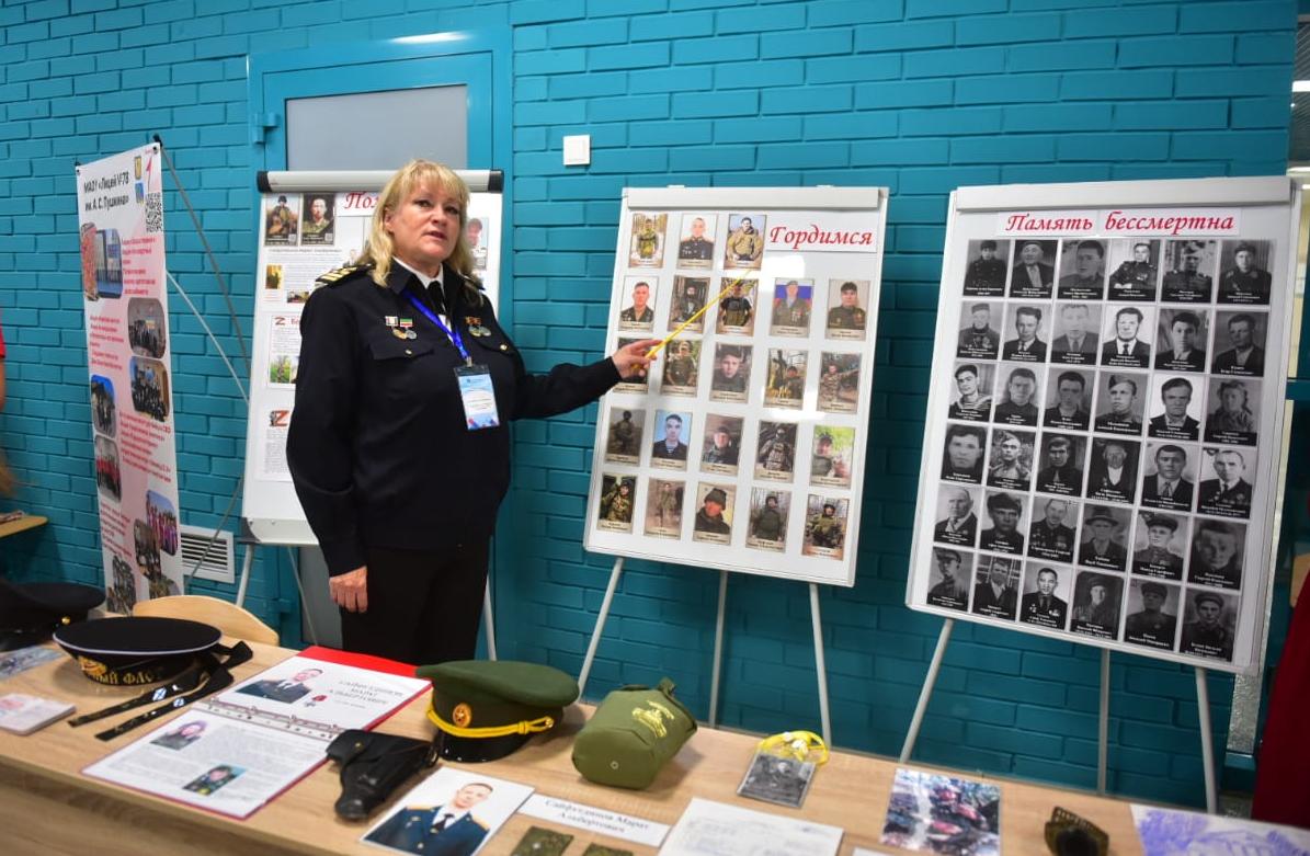 В день пленарного заседания августовской конференции учителей школы провели выставку-презентацию. В этом году она была посвящена Году защитника Отечества в России и предстоящему 400-летию города Набережные Челны.