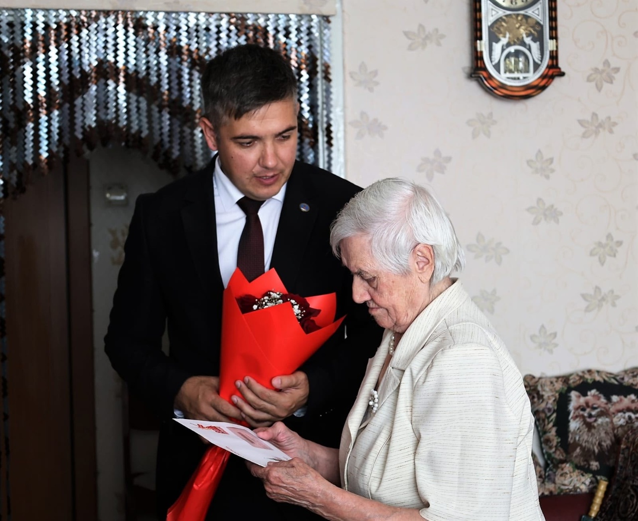 От имени Президента Российской Федерации Владимира Путина, мэра города Наиля Магдеева поздравления с 95-летним юбилеем получила ветеран Великой Отечественной войны, труженик тыла  Полинария Ефимовна Лаврентьева.