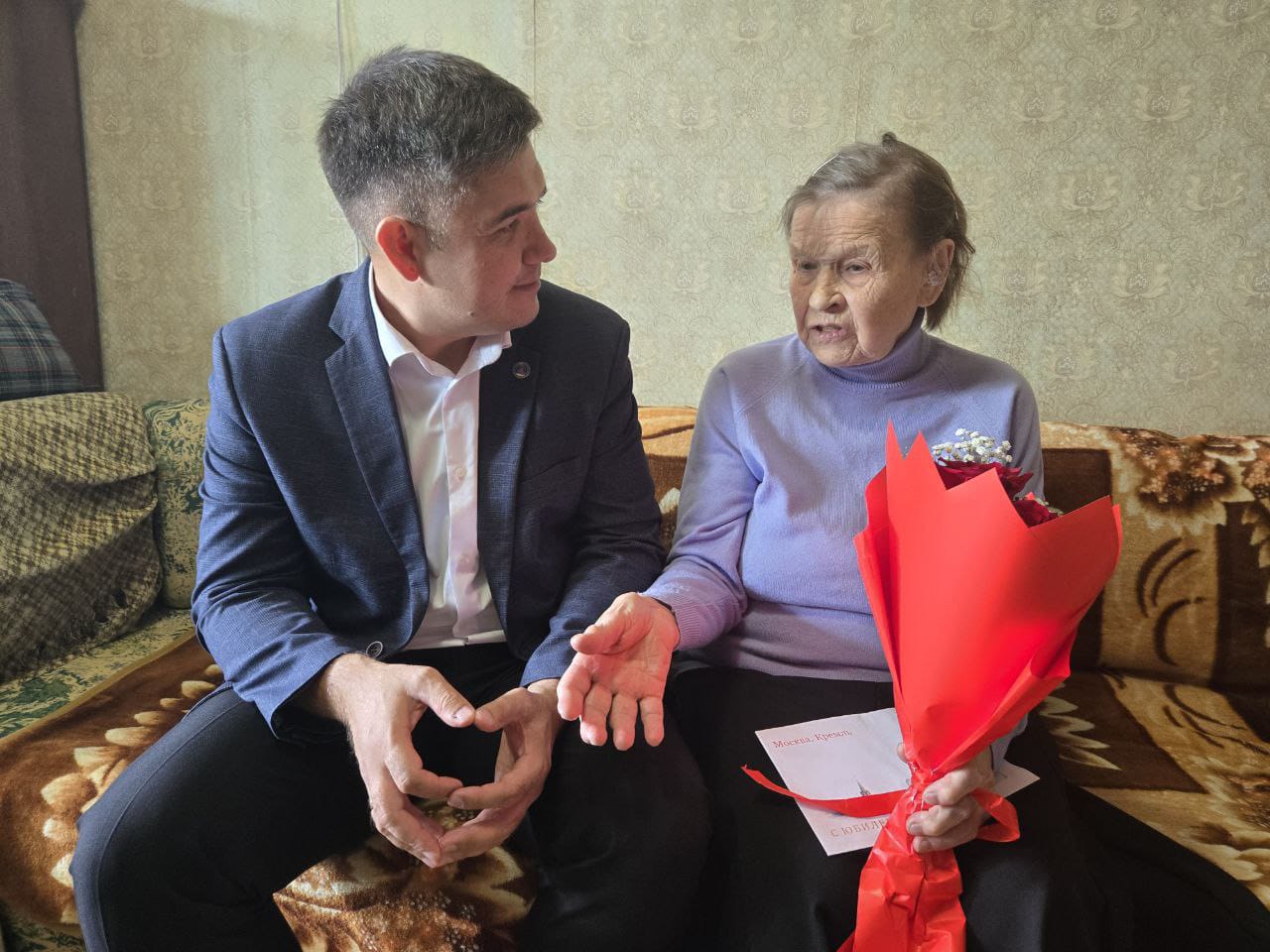 Россия Федерациясе Президенты Владимир Путин, шәһәр мэры Наил Мәһдиев исеменнән Бөек Ватан сугышы ветераны, тыл хезмәтчәне София Алексеевна Сутурина 95 яшьлек юбилее белән котлаулар кабул итте.