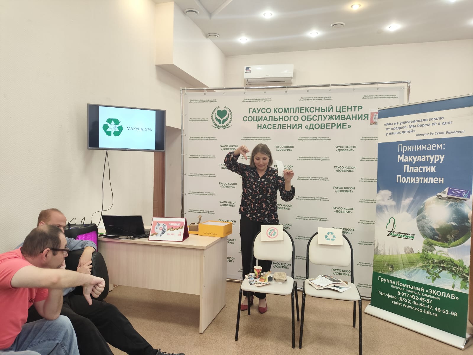 Чара барышында социаль хезмәт алучылар кәгазьнең төрлелеге турында белделәр һәм яраклысын киләчәктә куллану өчен танырга өйрәнделәр.