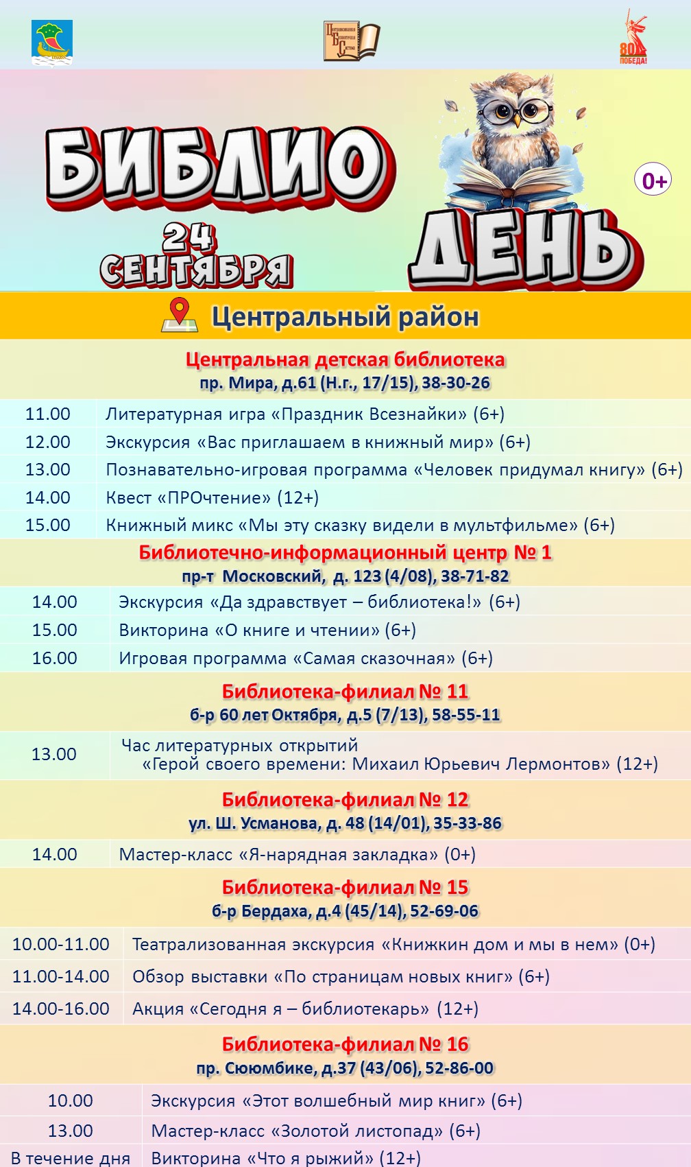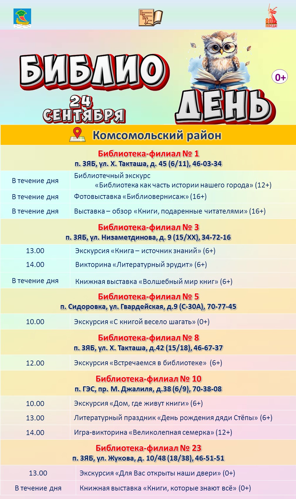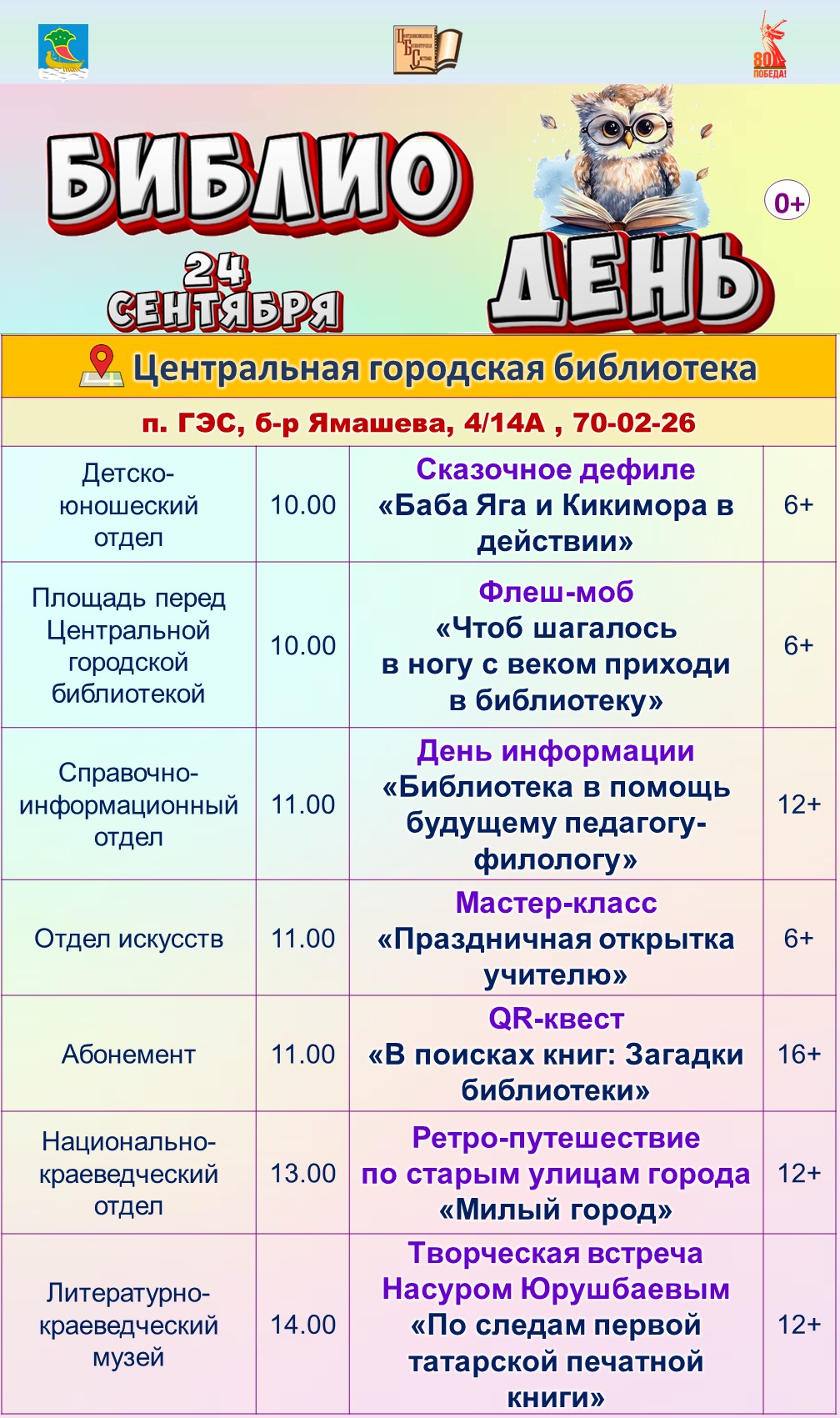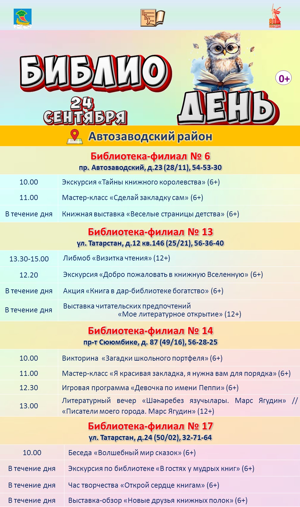 Кунаклар өчен зур мәдәни-агарту программасы әзерләнгән: китапханә заллары һәм фондлары буенча танышу экскурсияләре; иҗади мастер-класслар һәм кызыклы шәхесләр белән очрашулар; әдәби викториналар һәм конкурслар; заманча һәм классик әдәбият яңалыкларын тәкъдир итү.