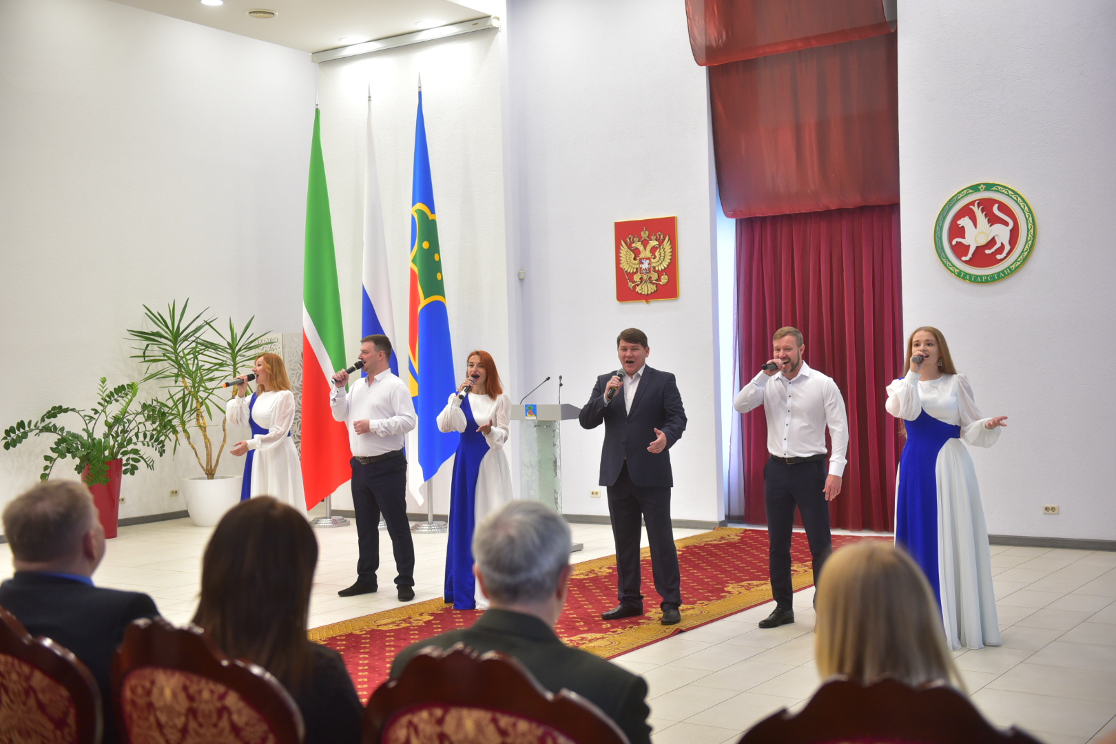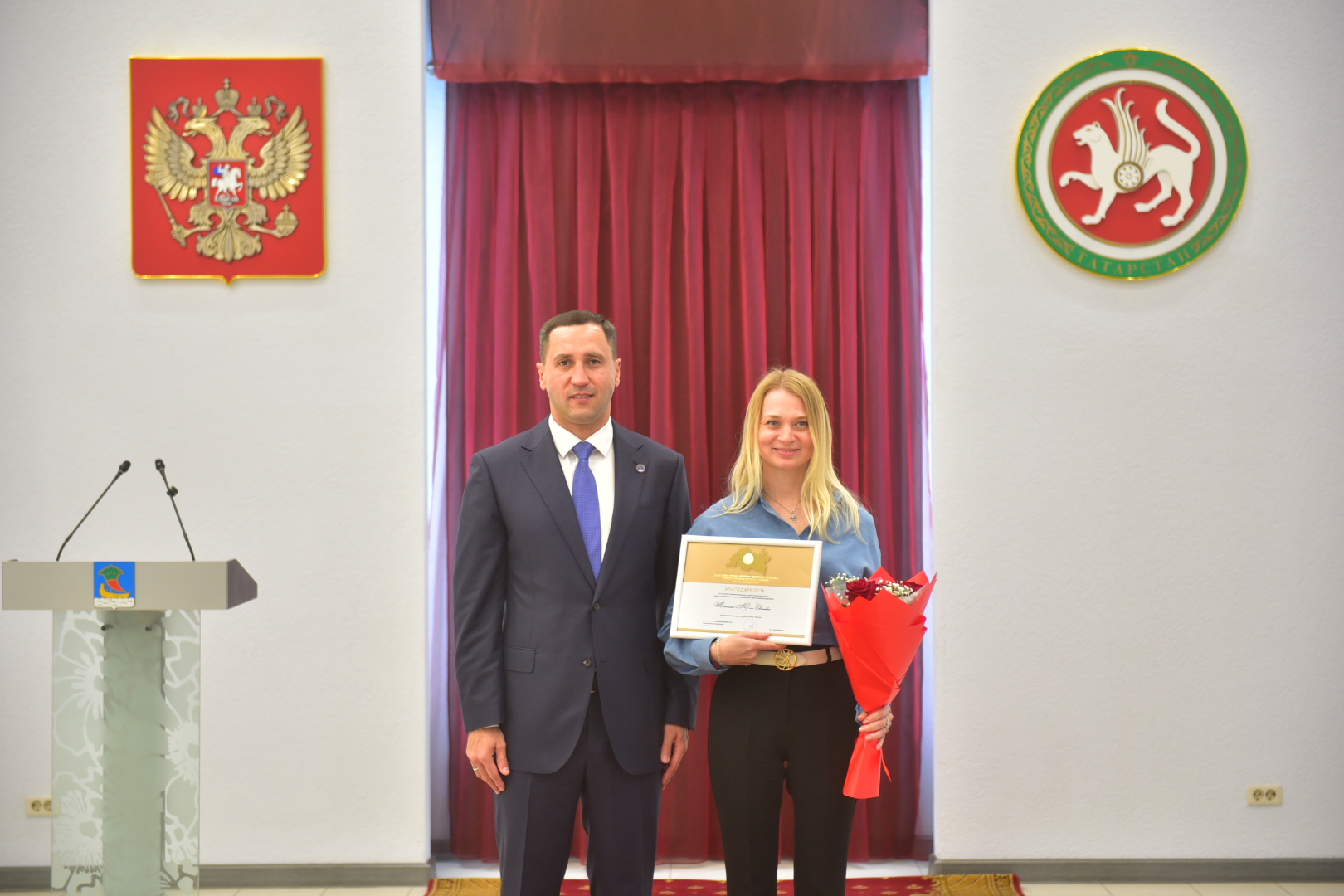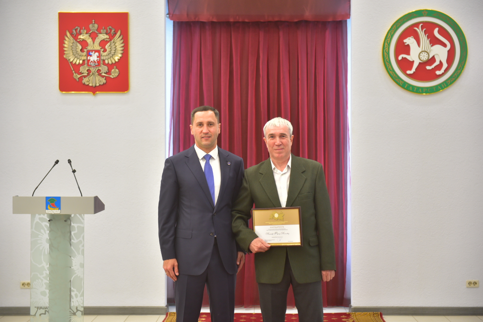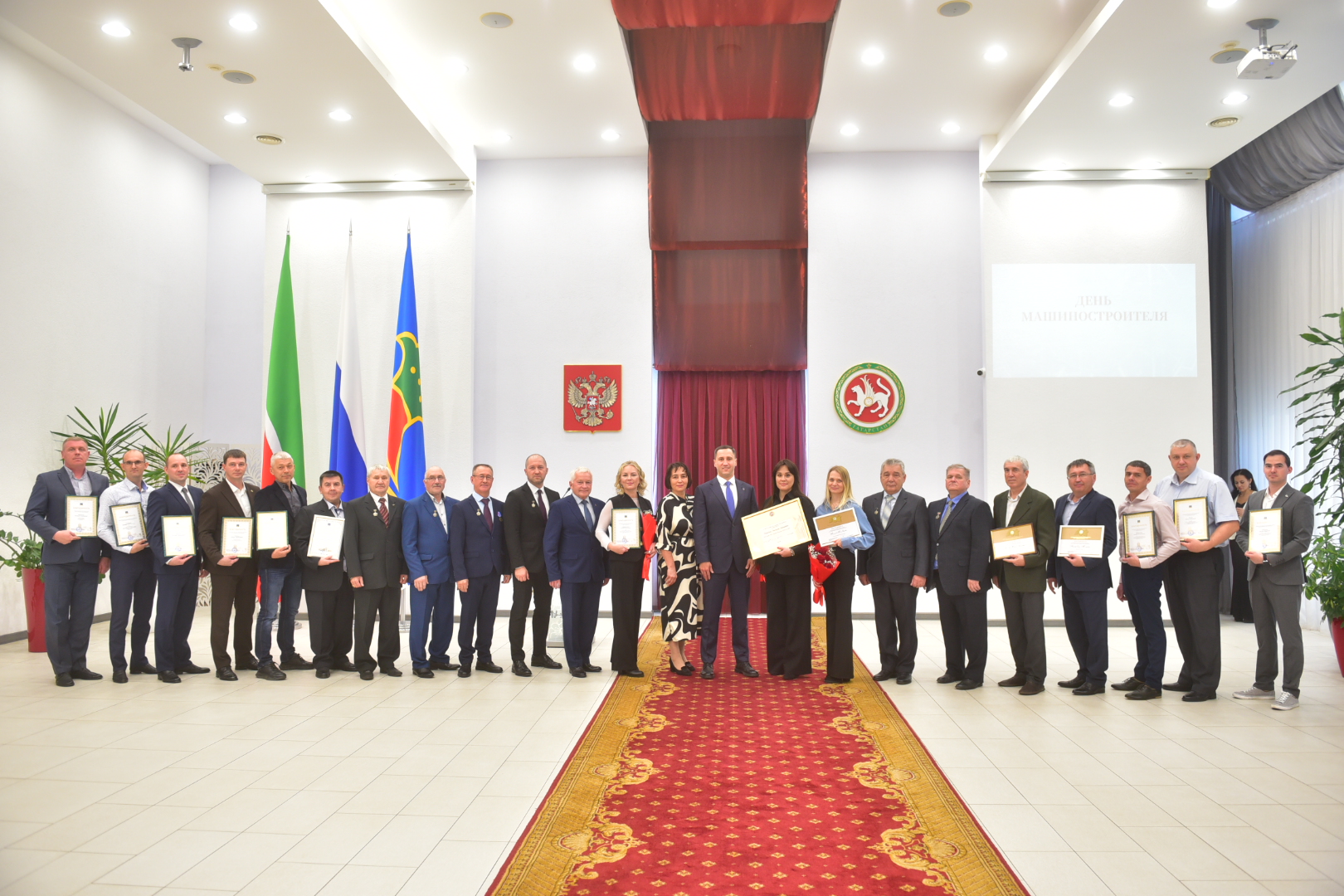 Башкарма комитет җитәкчесе Фәрид Салахов Тантаналар сараенда машина төзүчеләр көне уңаеннан бер төркем шәһәрдәшләренә дәүләт бүләкләре тапшырды.