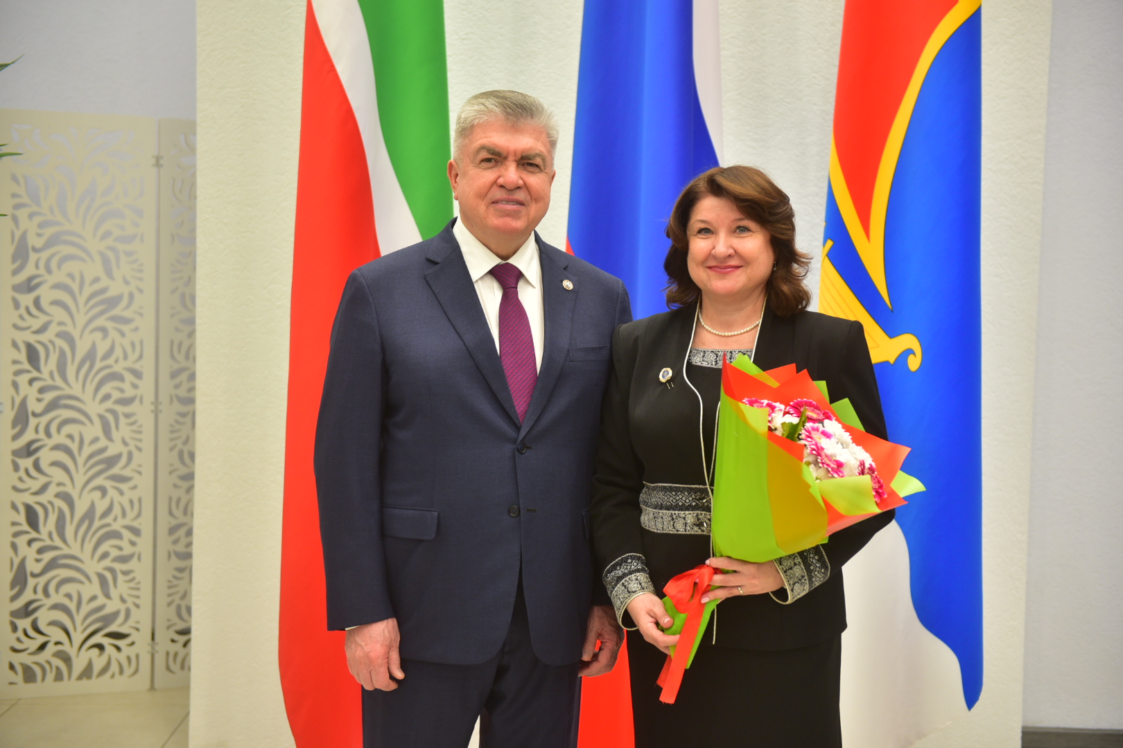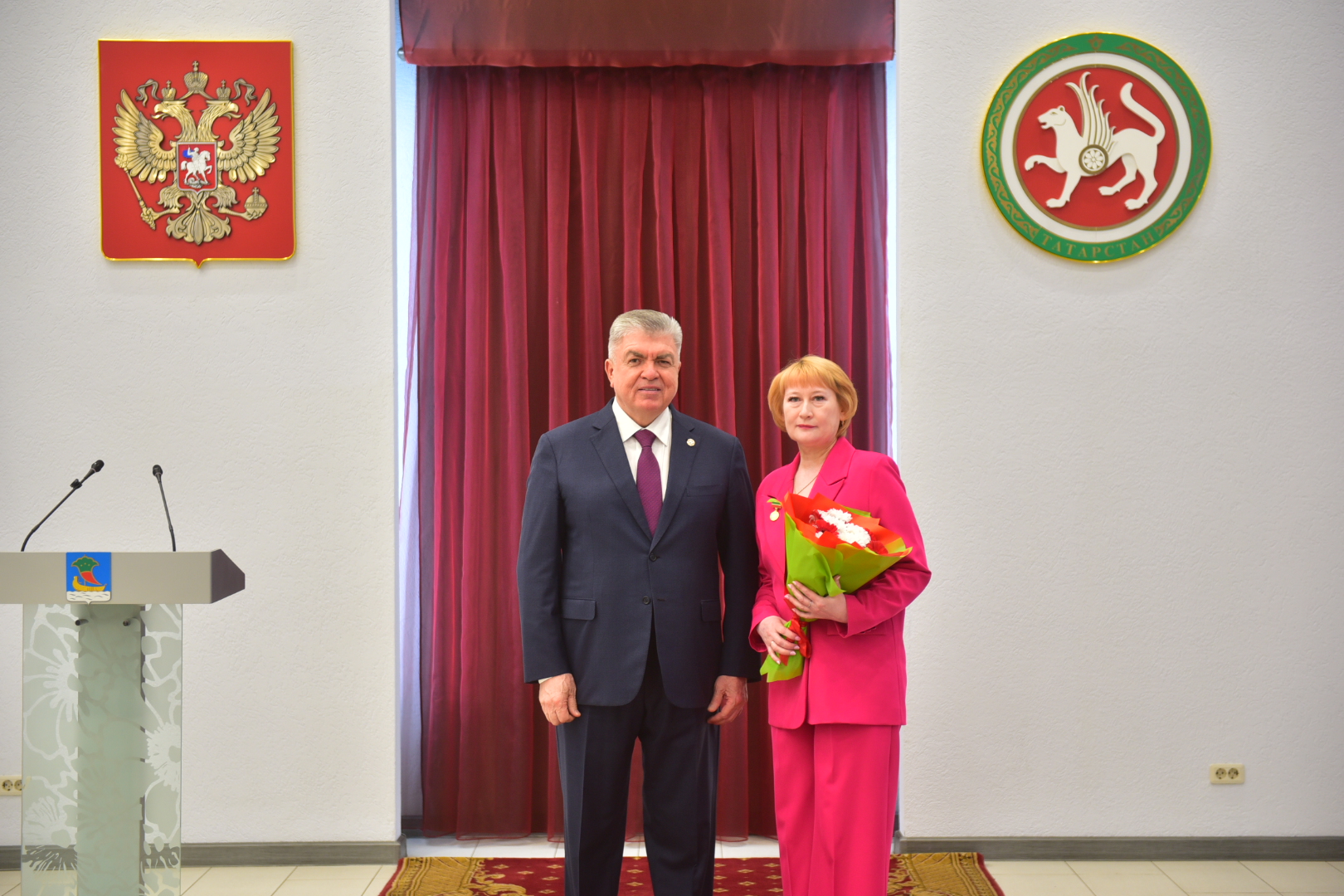 Мэр вручил заслуженные награды отличившимся педагогам. За многолетний добросовестный труд и заслуги в сфере образования почетное звание «Почетный работник сферы образования Российской Федерации» присвоено заместителю директора по учебной работе школы №15 Сирине Абдуллиной; заведующему детским садом № 48 «Винни-Пух» Гульнаре Хузиной; директору Кадетской школы №82 имени Героя Советского Союза Ильдара Маннанова Эльмире Шариповой.