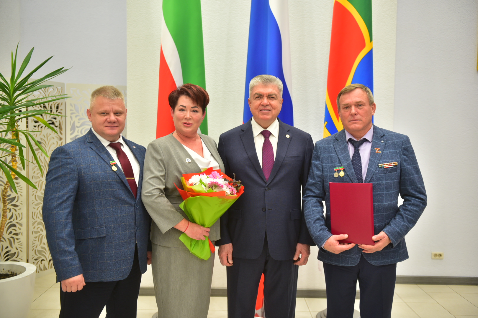 За большой вклад в развитие системы образования и многолетний добросовестный труд нагрудный знак Министерства образования и науки Республики Татарстан «За заслуги в образовании» получили учитель татарского языка и литературы школы №41 Лира Галимуллина; директор Набережночелнинской школы №75 для детей с ограниченными возможностями здоровья Ольга Марданова; директор Кадетской школы №47 имени Героя Советского Союза Никиты Кайманова Александр Помыткин.