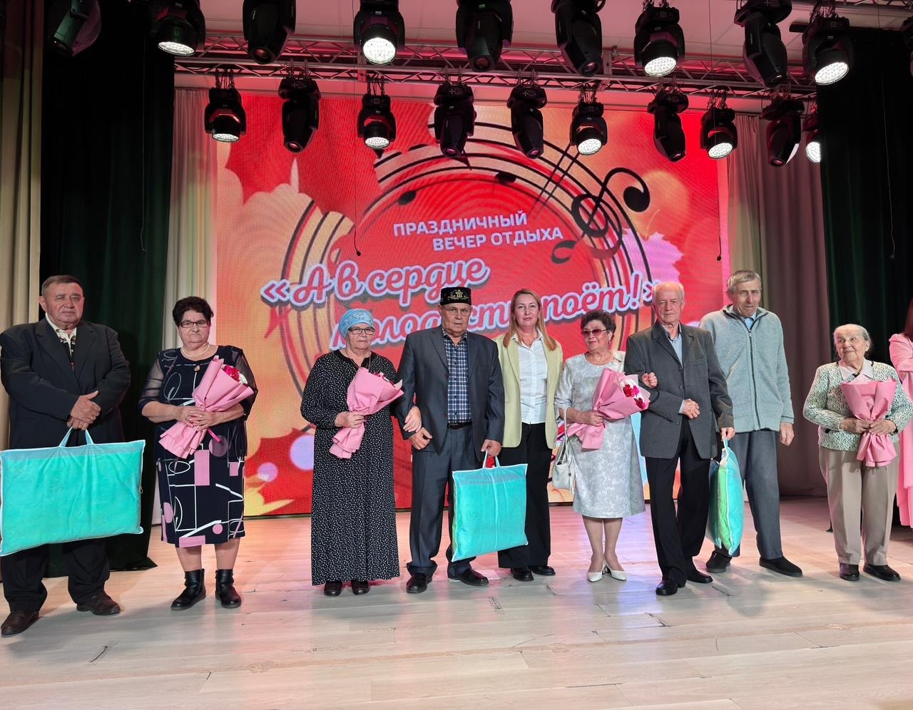 В Доме дружбы народов «Родник» состоялся праздничный вечер «А в сердце молодость поет!». С теплыми пожеланиями выступила заместитель главы администрации Центрального района Эльмира Гильметдинова. В этот праздничный день на сцене чествовали юбиляров семейной жизни: Захаровых Евгения Васильевича и Татьяну Гавриловну, Фархутдиновых Данира Зариповича и Гольгену Салимзяновну, Гавриловых Владимира Владимировича и Зою Владимировну, Шаяхметовых Фарита Нурмухаметовича и Алевтину Илларионовну.