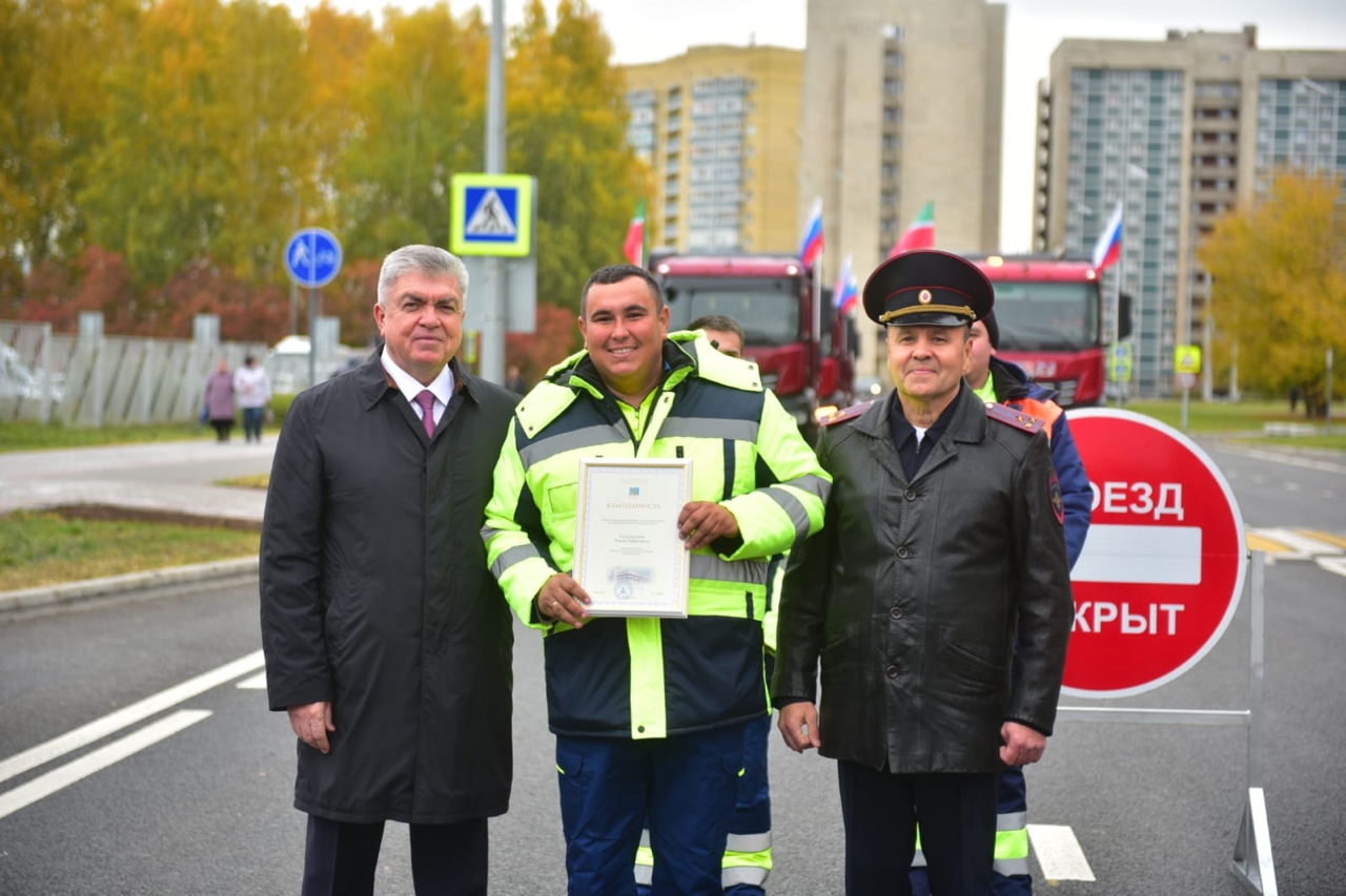 Шәһәр җитәкчелеге, юл салучылар, журналистлар – чарага шактый кеше җыелды. Юл сыйфатының елдан-ел күзгә күренеп үзгәрүен Чаллының баш автоинспекторы Радий Кадиков та билгеләп узды. Наил Мәһдиев иң алдынгы юл салучыларны рәхмәт хаты белән бүләкләде. Соңыннан Жуков урамы буйлап бер-бер артлы тантаналы рәвештә йөк машиналары узды.