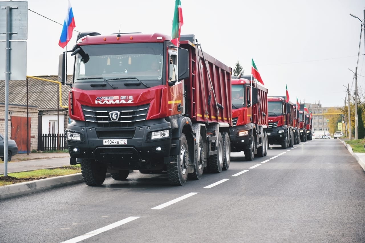 Символический старт началу движения по отремонтированной дороге дали мэр города и Радий Кадиков: после этого, по традиции, по новому асфальту, гудя, проехала колонна самосвалов дорожников.