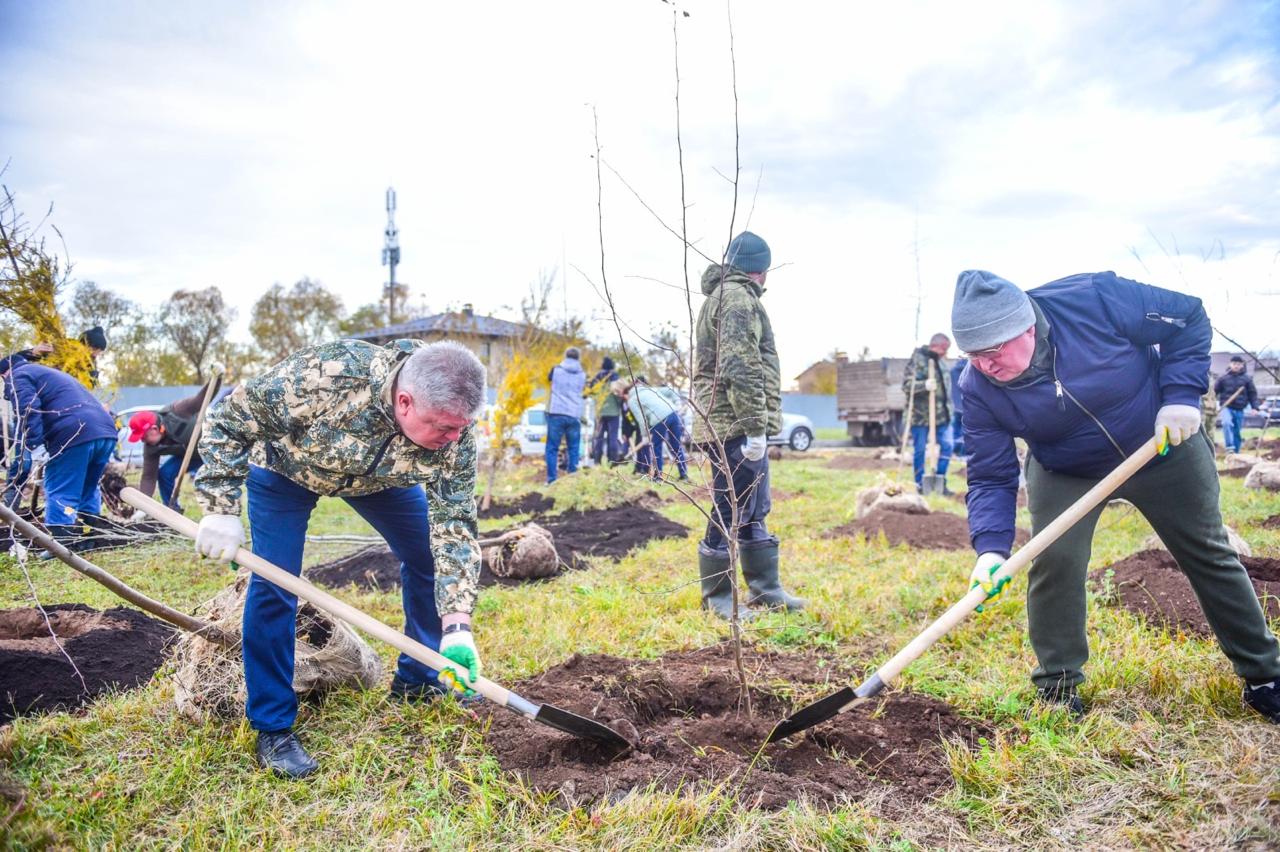 Сегодня в Набережных Челнах мэр города Наиль Магдеев вместе с депутатами Городского Совета и работниками Исполнительного комитета высадили деревья у Боровецкого моста.
