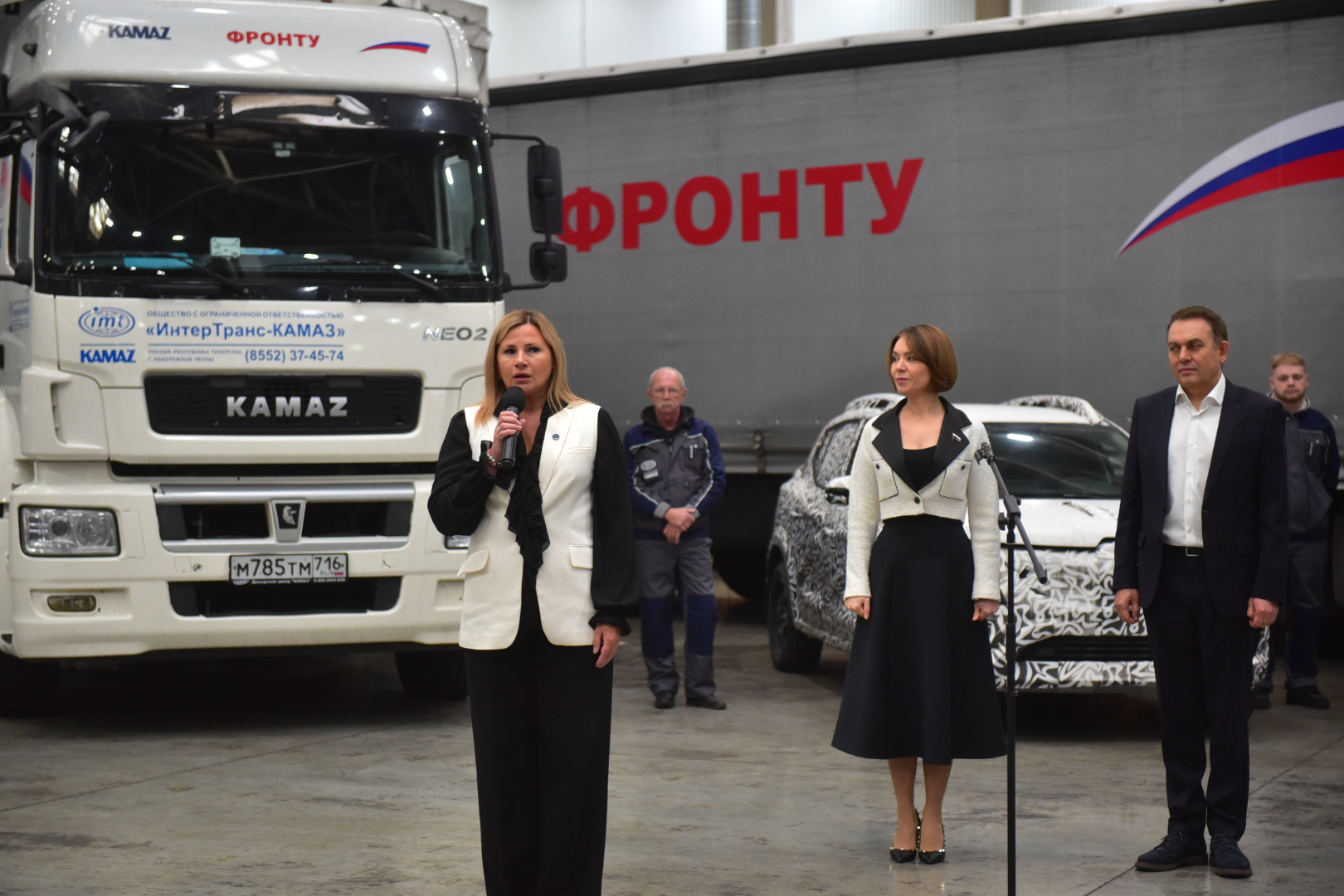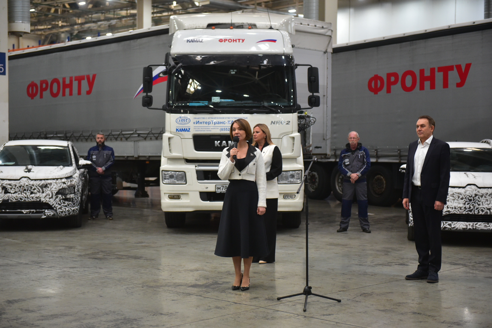 Ирина Сагидуллина поблагодарила от имени мэра города Наиля Магдеева коллектив автогиганта за поддержку военнослужащих. Заместитель главы муниципального образования напомнила, что Набережные Челны совместно КАМАЗом с первых дней направляют в зону СВО шефские и гуманитарные грузы.