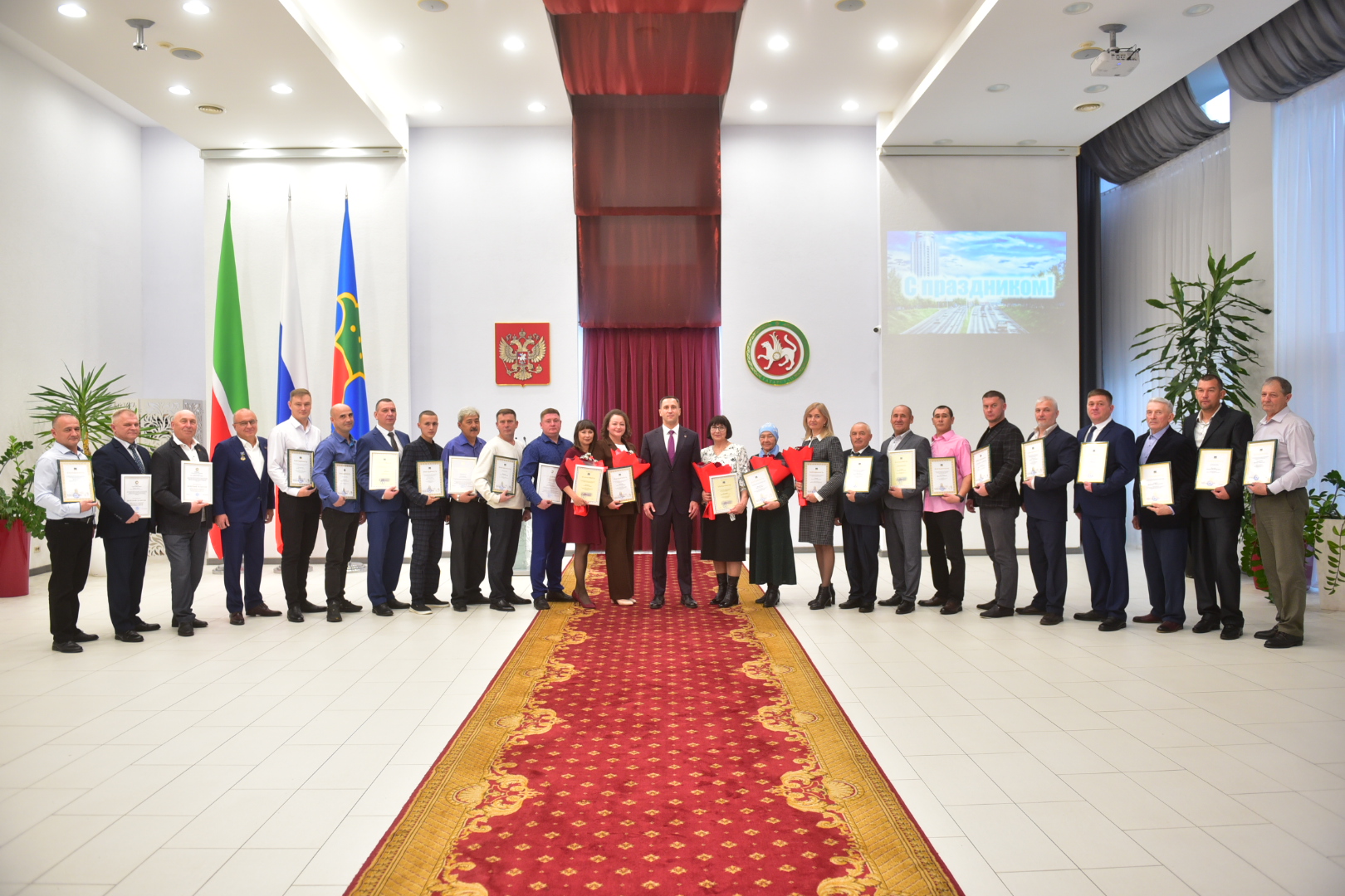 Во Дворце торжеств сегодня прошло торжественное мероприятие, посвященное Дню работников дорожного хозяйства и автомобильного городского транспорта. С профессиональным праздником работников отрасли поздравил руководитель Исполнительного комитета Фарид Салахов.
