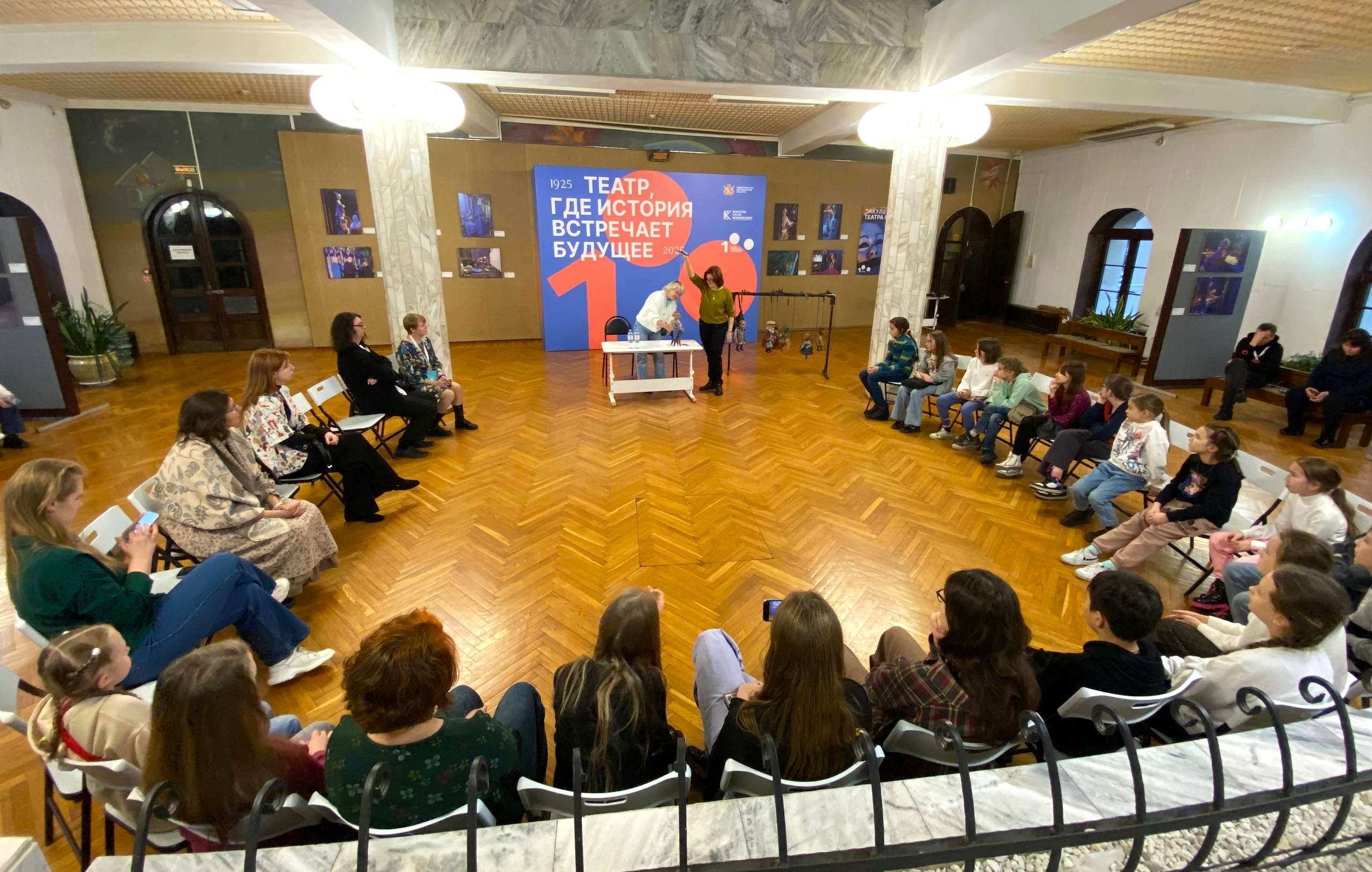 В рамках образовательного блока фестиваля состоялась творческая встреча с исполнителями ролей в спектакле «Господин Скороходов», в ходе которой артистам удалось рассказать и продемонстрировать юным зрителям кукольных персонажей, а также все желающие смогли примерить на себя непростую роль артиста-кукловода.
