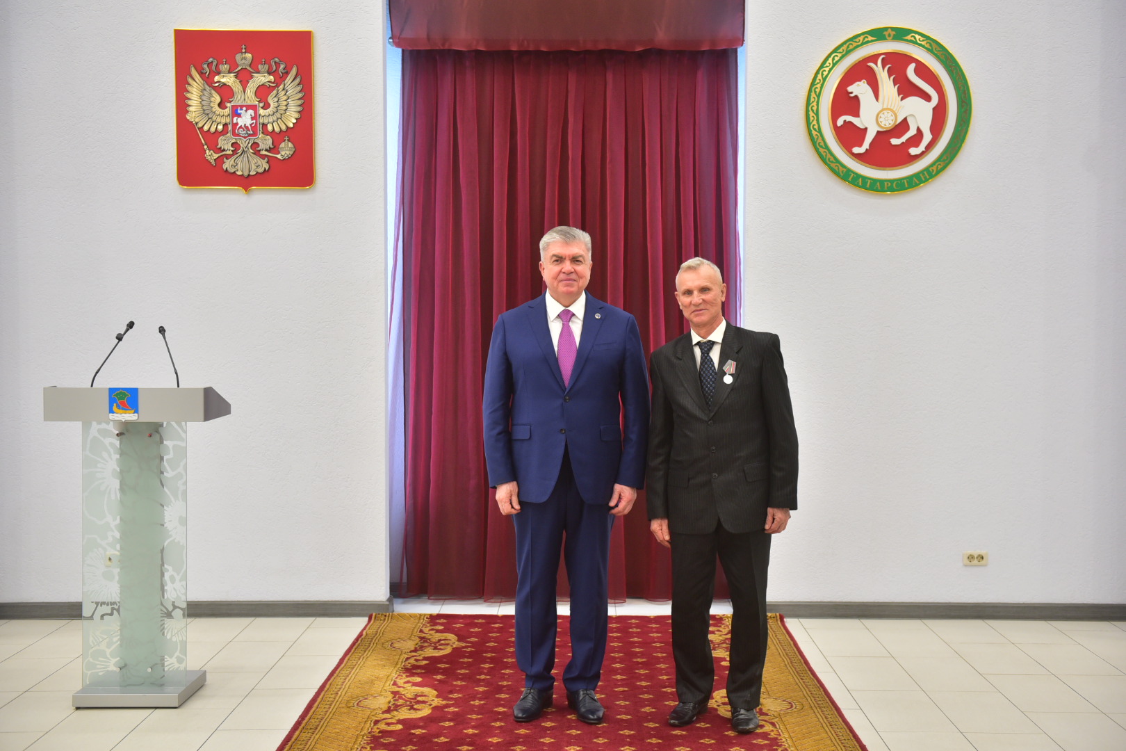 За заслуги в области экономики и многолетнюю плодотворную работу медалью Республики Татарстан «За доблестный труд» награждены главный специалист логистического центра публичного акционерного общества «КАМАЗ» Светлана Голубева, главный специалист службы налогового регулирования публичного акционерного общества «КАМАЗ» Александр Потапов.