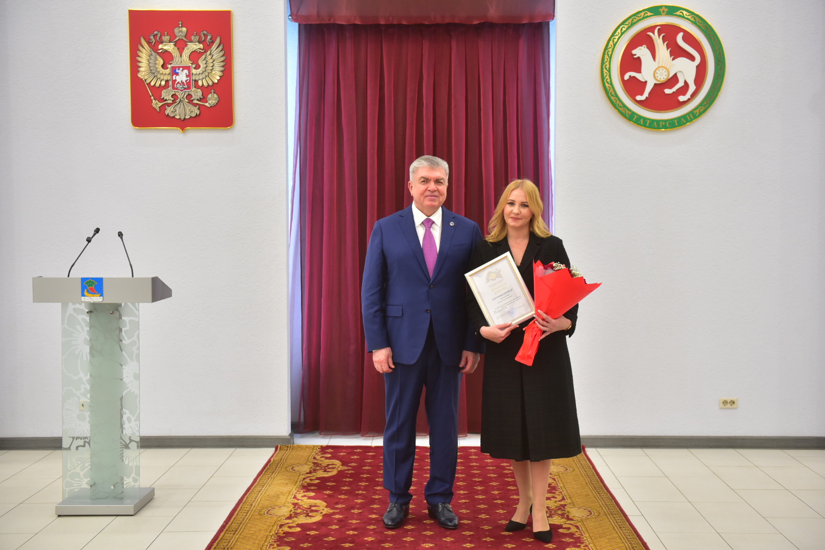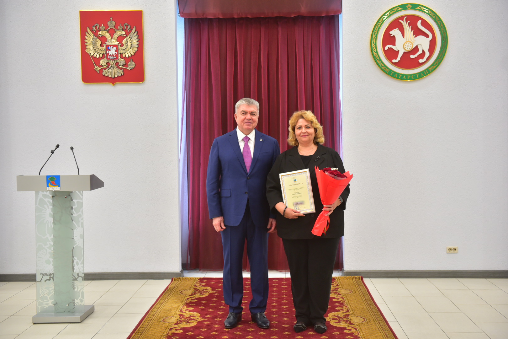 За добросовестный труд и большой вклад в социально-экономическое развитие республики почетное звание «Заслуженный экономист Республики Татарстан» присвоено начальнику управления экономического развития и поддержки предпринимательства Исполнительного комитета города Гузель Гилязовой.