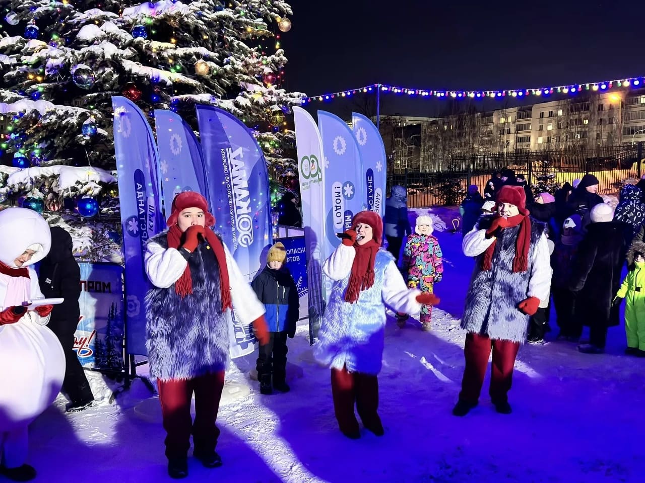Во дворе дома 38/13 состоялось праздничное открытие новогодней ёлки с концертной программой «Зимние узоры Нового года» при участии творческих коллективов Дворца Культуры «КАМАЗ».