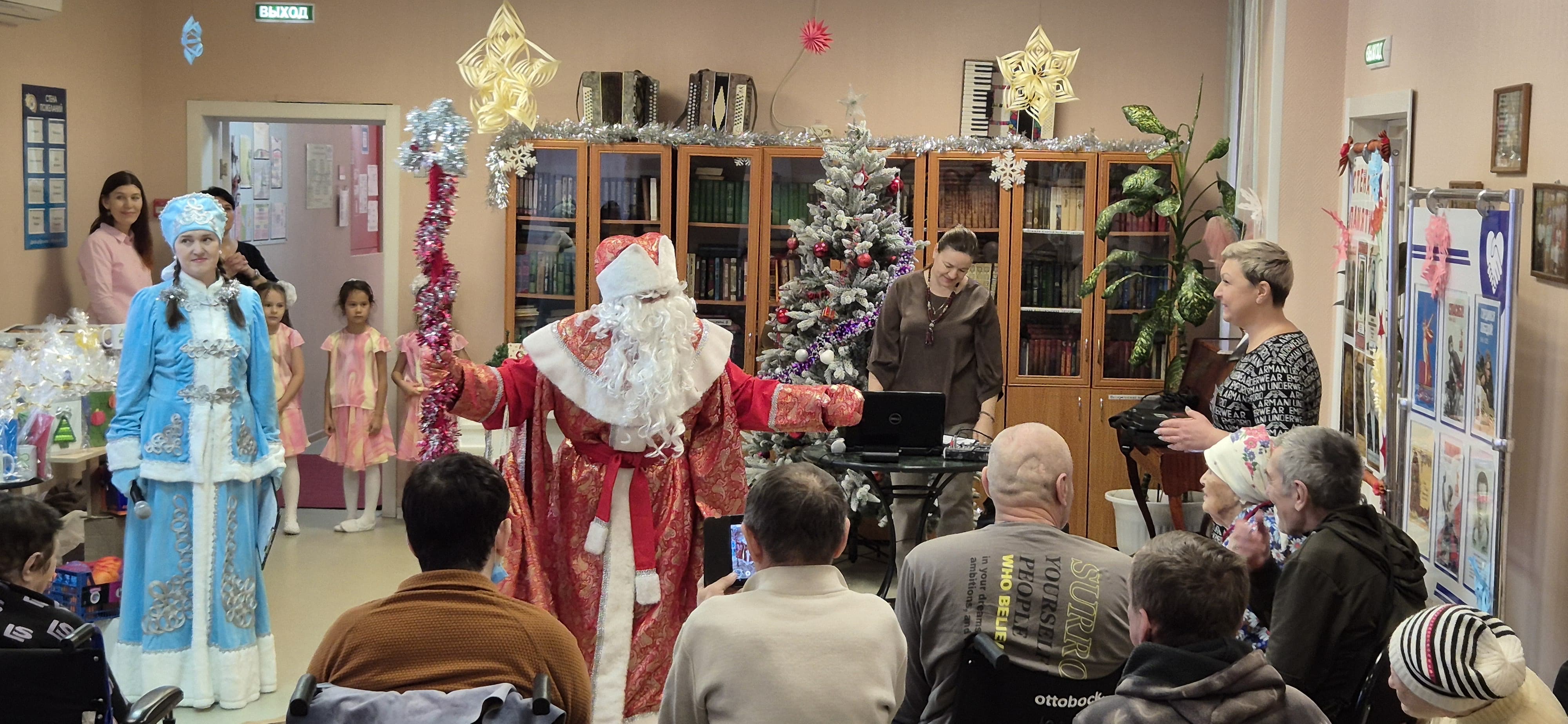 Кульминацией праздника стал выход Деда Мороза и Снегурочки, вместе с которыми жители интерната спели задорные новогодние песни под аккордеон, создавая настоящую зимнюю сказочную атмосферу..jpg)
