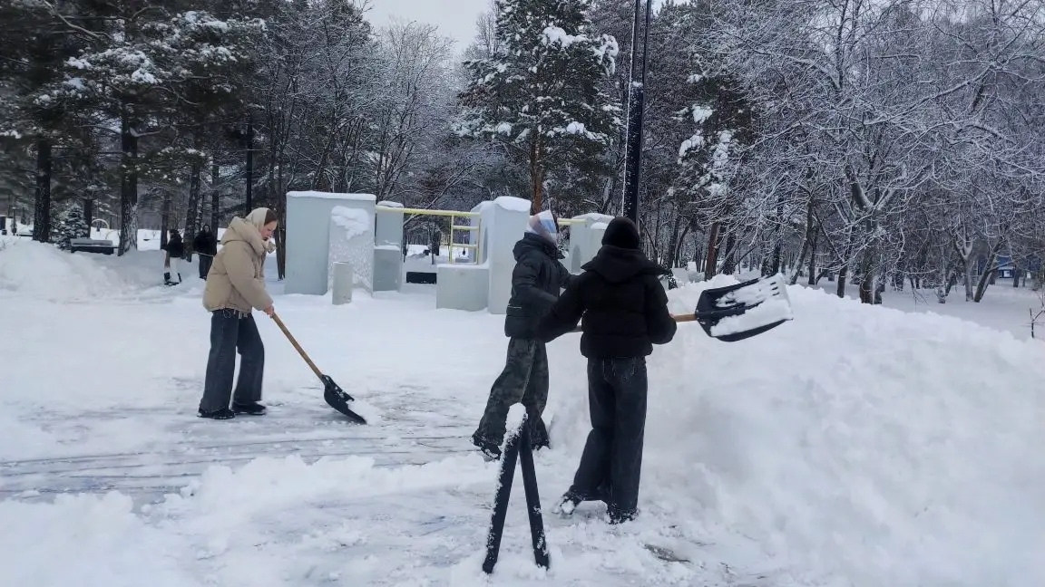 Будущие педагоги приняли участие в акции «Снежный десант». Студенты Набережночелнинского педагогического колледжа расчистили от снега пешеходные зоны, спортивные площадки на территории парка Гренада.