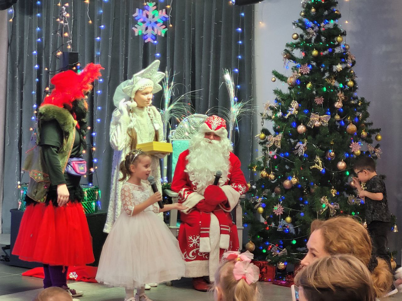 Глава администрации Автозаводского района Айрат Хуснуллин лично поздравил детей с Новым годом, пожелав им радости и чудес. На мероприятии выступили Дед Мороз и Снегурочка, вместе со сказочными персонажами дети зажгли ёлку. Для юных гостей праздника организовали танцы, игры и конкурс стихотворений на трёх языках.