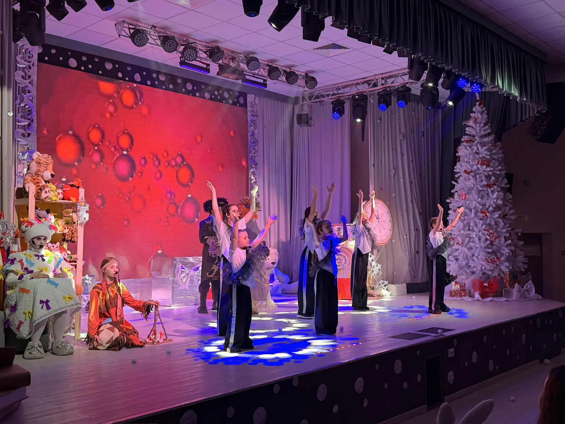 Особенно трогательным было участие самих подопечных — они не были простыми зрителями, а активно включались в театрализованное представление, создавая атмосферу истинного творчества и единства. Музыкальное сопровождение создавало веселое настроение, а участники с энтузиазмом двигались, танцевали и веселились. Это не только подняло настроение, но и способствовало развитию командного духа и социальной активности.