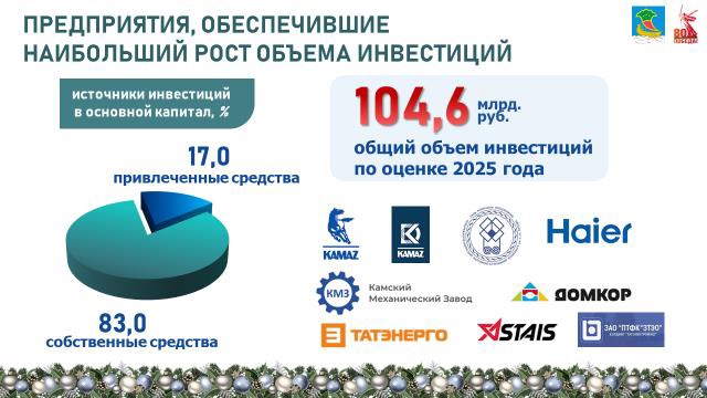 Городские предприятия продолжают привлекать федеральные средства и участвовать в программах поддержки: в 2025 году Фонд развития промышленности профинансировал шесть челнинских проектов на сумму 6,5 млрд рублей, ещё четыре проекта находятся на рассмотрении. Также 76 местных предприятий участвуют в федеральном проекте «Производительность труда», и с начала года к нему присоединились ещё 10 компаний – это позволяет повышать добавленную стоимость, снижать издержки и увеличивать эффективность использования трудовых ресурсов.