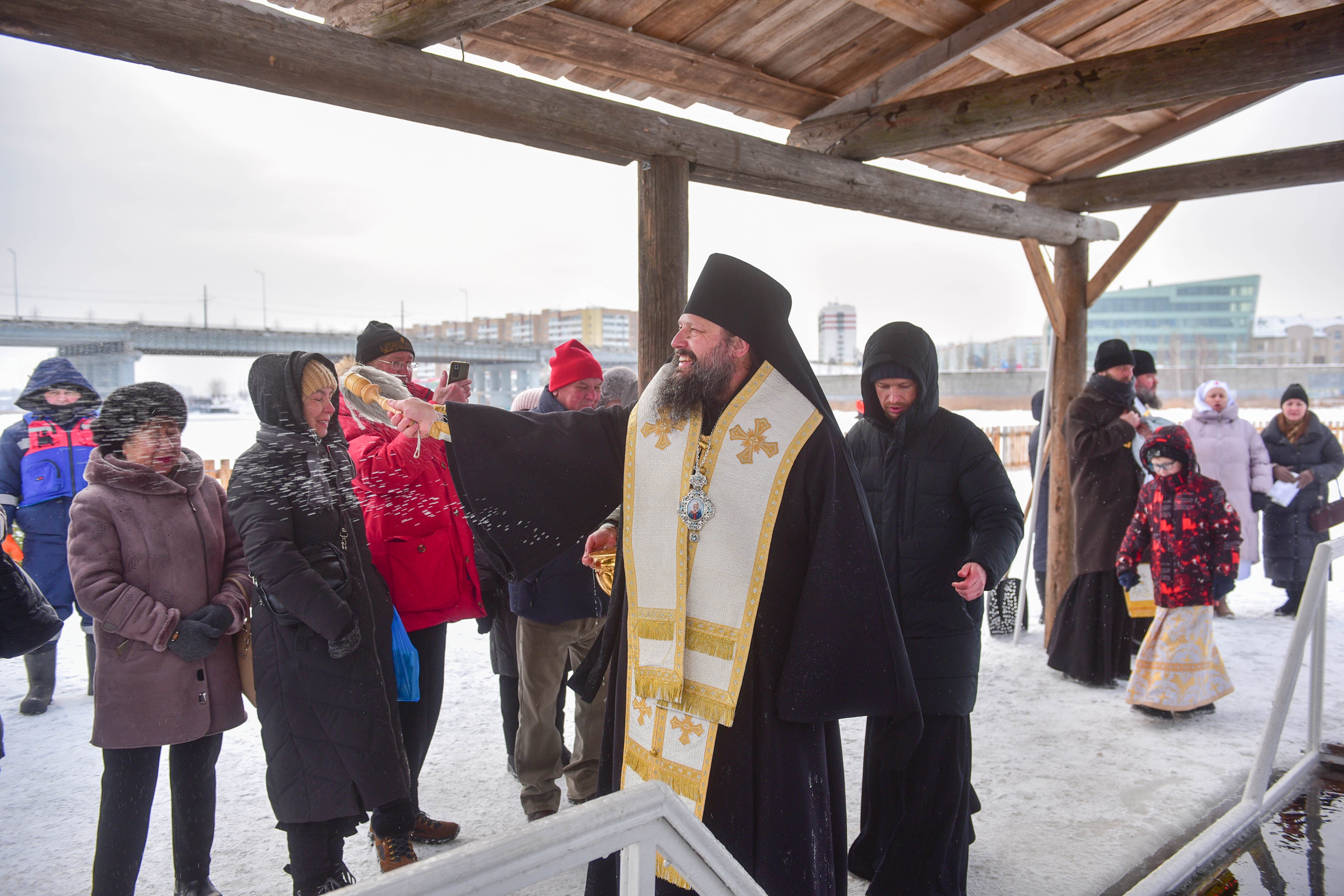 Возле иордани епископ Набережночелнинский и Елабужский Гавриил прочитал молитвенное последование, совершил обряд освящения источника. Владыка отметил, что главный дар этого праздника дар любви и единения: «Сегодня праздник Бога Всевышнего, который дарит нам дары через святую воду, через дар единства и любви. Да прославим Всевышнего нашими добрыми делами! Пусть эта вода святая вольется в наше сердце добротой, и мы каждому человеку и далекому, и близкому, и знакомому, и незнакомому, и человеку другой веры, и даже неверующему человеку – уделим любовь и заботу, наше внимание и доброту!»