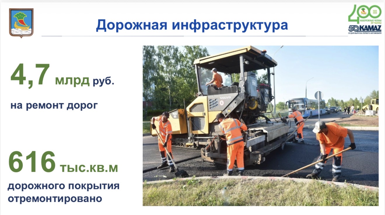 «В 2025 году выполнены дорожные работы на сумму 4,7 млрд рублей. Это рекордная сумма за последние годы, выделенная нашему городу. Дорожные рабочие отремонтировали 616 тысяч квадратных метров дорожного покрытия. Мы благодарим правительство республики и лично Рустама Нургалиевича Минниханова за поддержку Набережных Челнов», — отметил руководитель Исполнительного комитета.