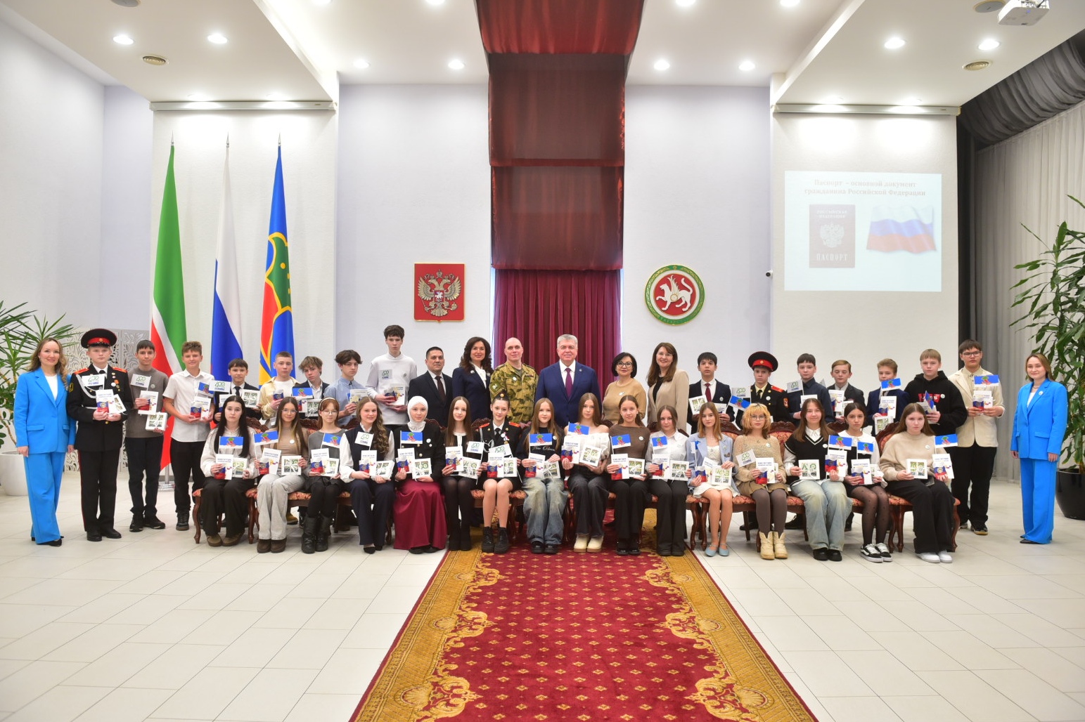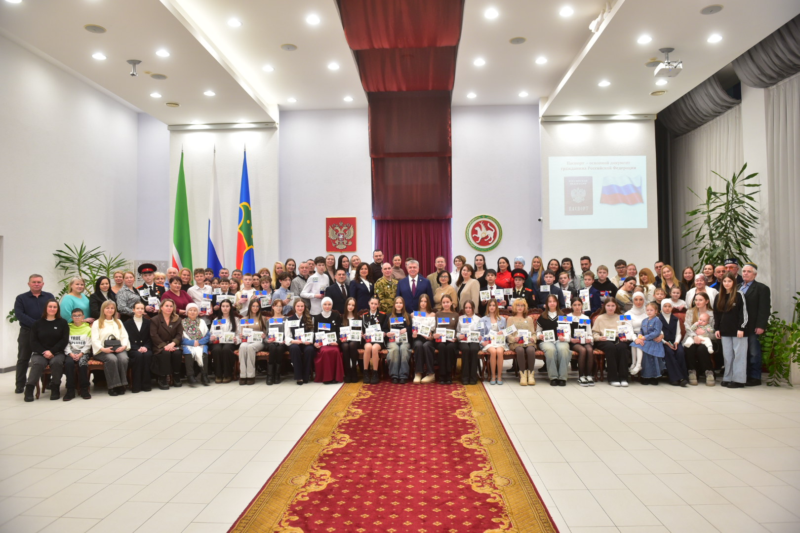 Во Дворце торжеств провели церемонию вручения паспортов гражданам, достигшим 14-летнего возраста. Свой первый главный документ получил 31 юный челнинец. С напутствием к ним обратился мэр Наиль Магдеев: